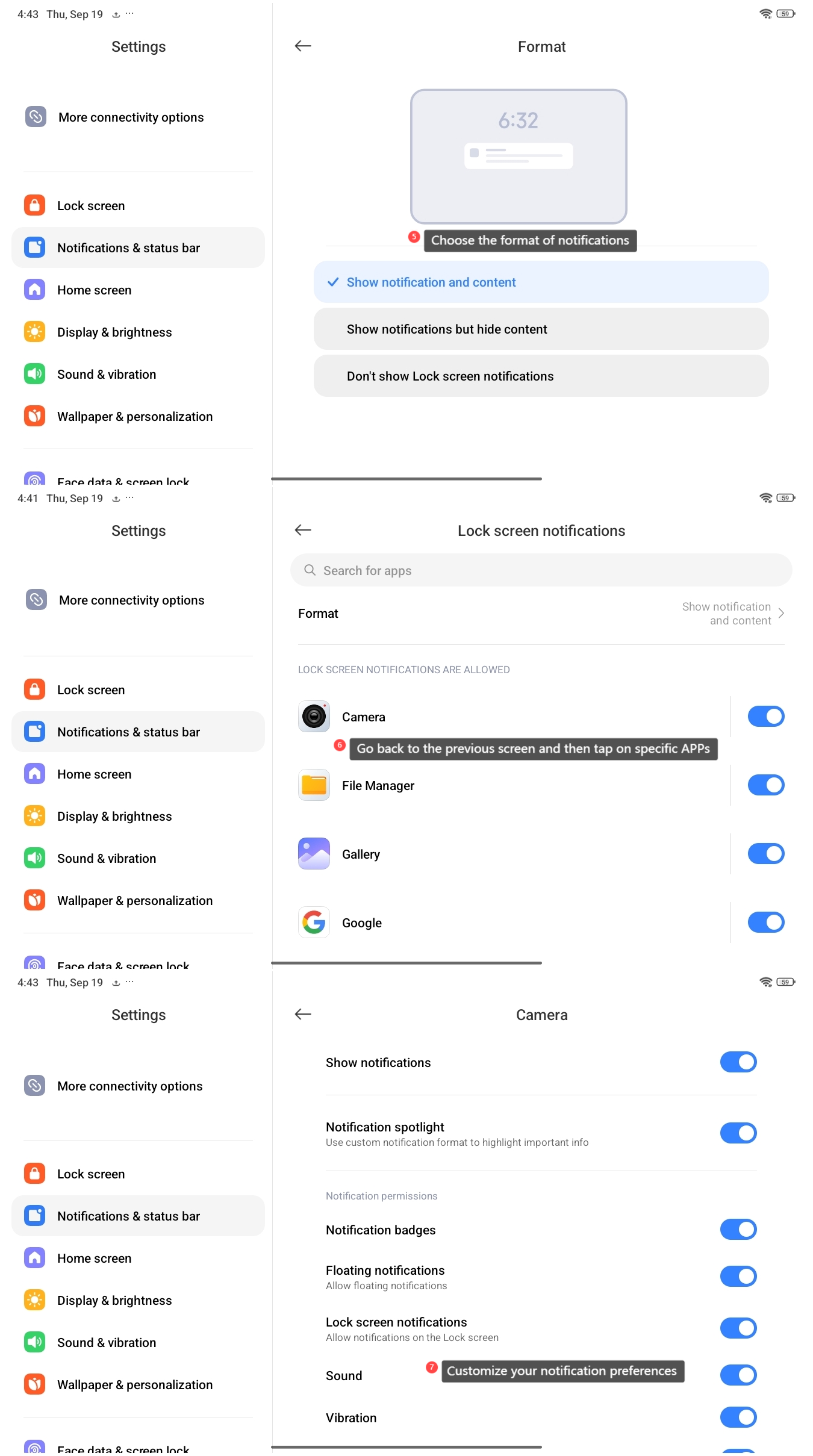 7. Bạn có thể tùy chỉnh tùy chọn thông báo của mình. Ví dụ: bằng cách bật [Thông báo trên màn hình khóa], bạn cho phép thông báo xuất hiện trên màn hình khóa.