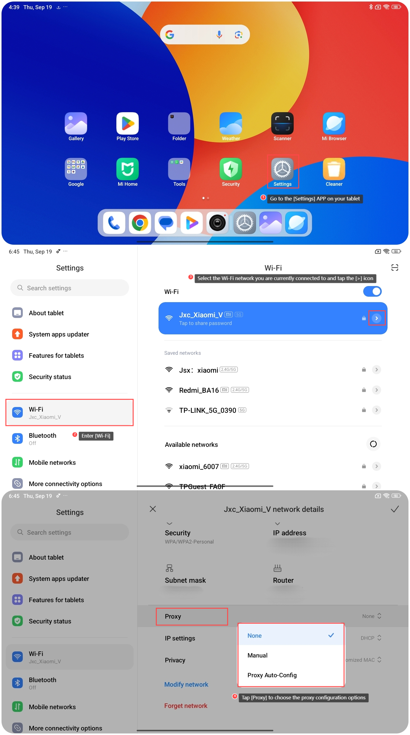 Để thiết lập proxy trên Redmi Pad SE 8.7 4G, vui lòng tham khảo các bước sau: