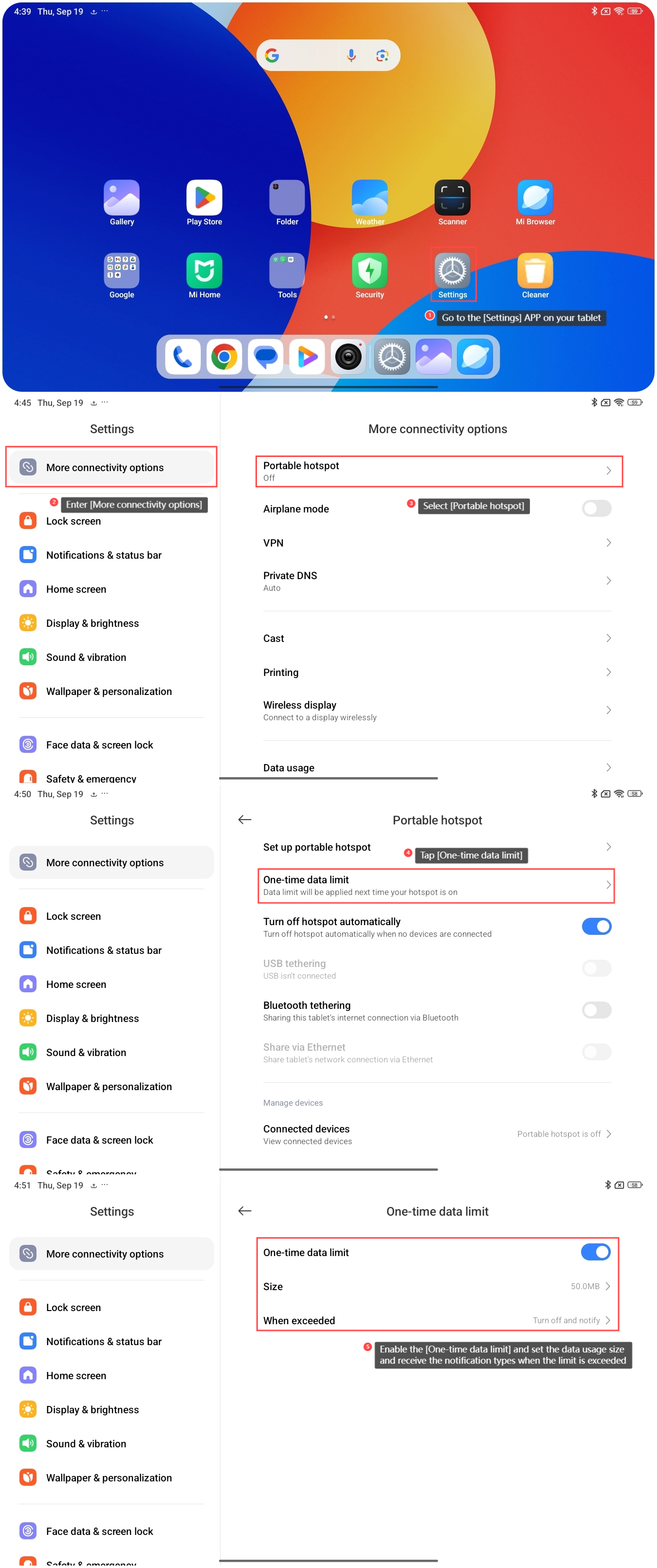 Để đặt giới hạn dữ liệu cho điểm phát sóng của bạn trên máy tính bảng, vui lòng tham khảo các bước sau: