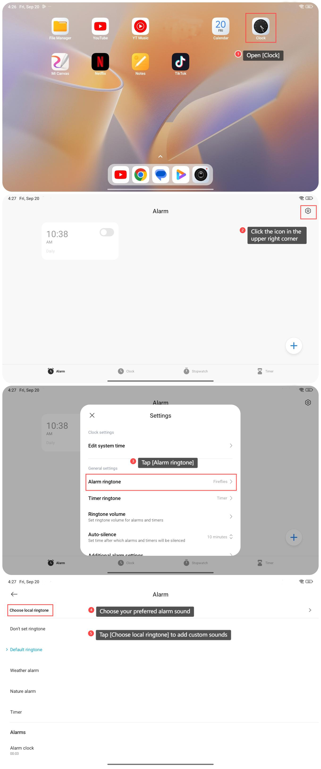 4. Chọn âm thanh báo thức ưa thích của bạn;