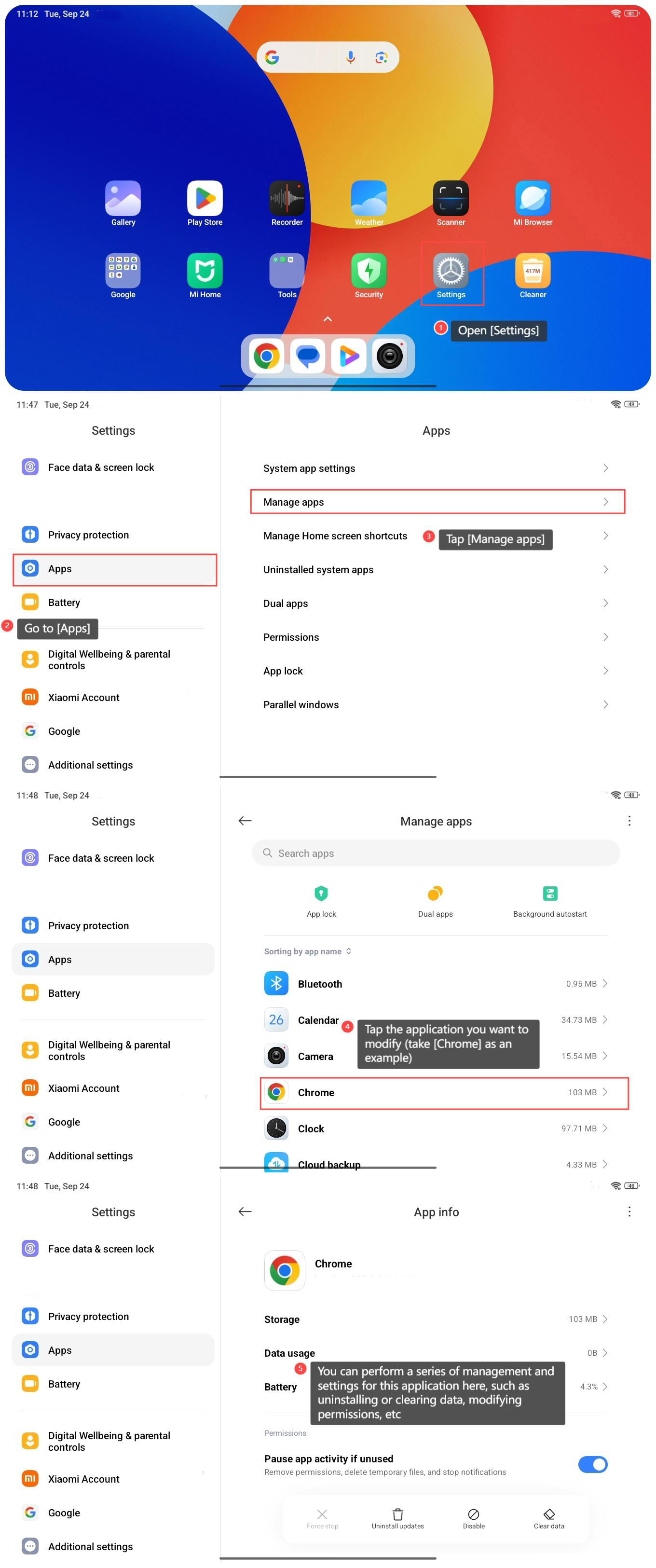 Để quản lý các ứng dụng của bên thứ ba trên Redmi Pad SE 8.7, vui lòng tham khảo các bước sau:
