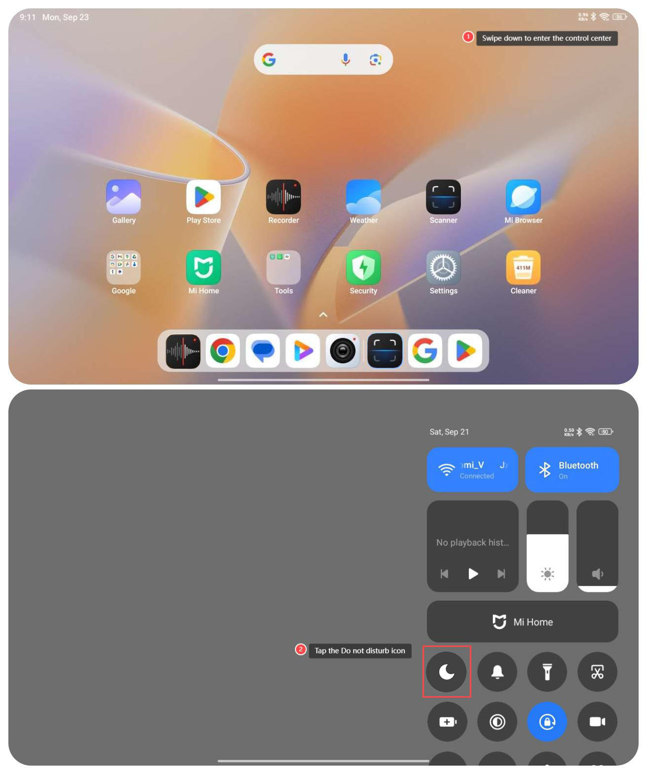 Để bật hoặc tắt Không làm phiền trên máy tính bảng của bạn, vui lòng tham khảo các phương pháp sau: