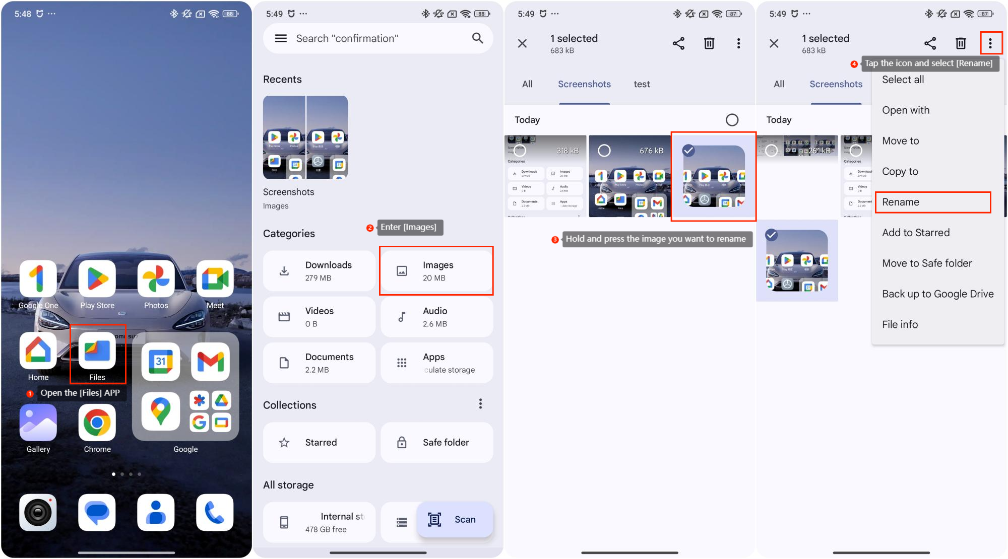 Trước khi sao lưu trong dịch vụ của Google, bạn có thể đổi tên ảnh trên điện thoại của mình thông qua ỨNG DỤNG Tệp.