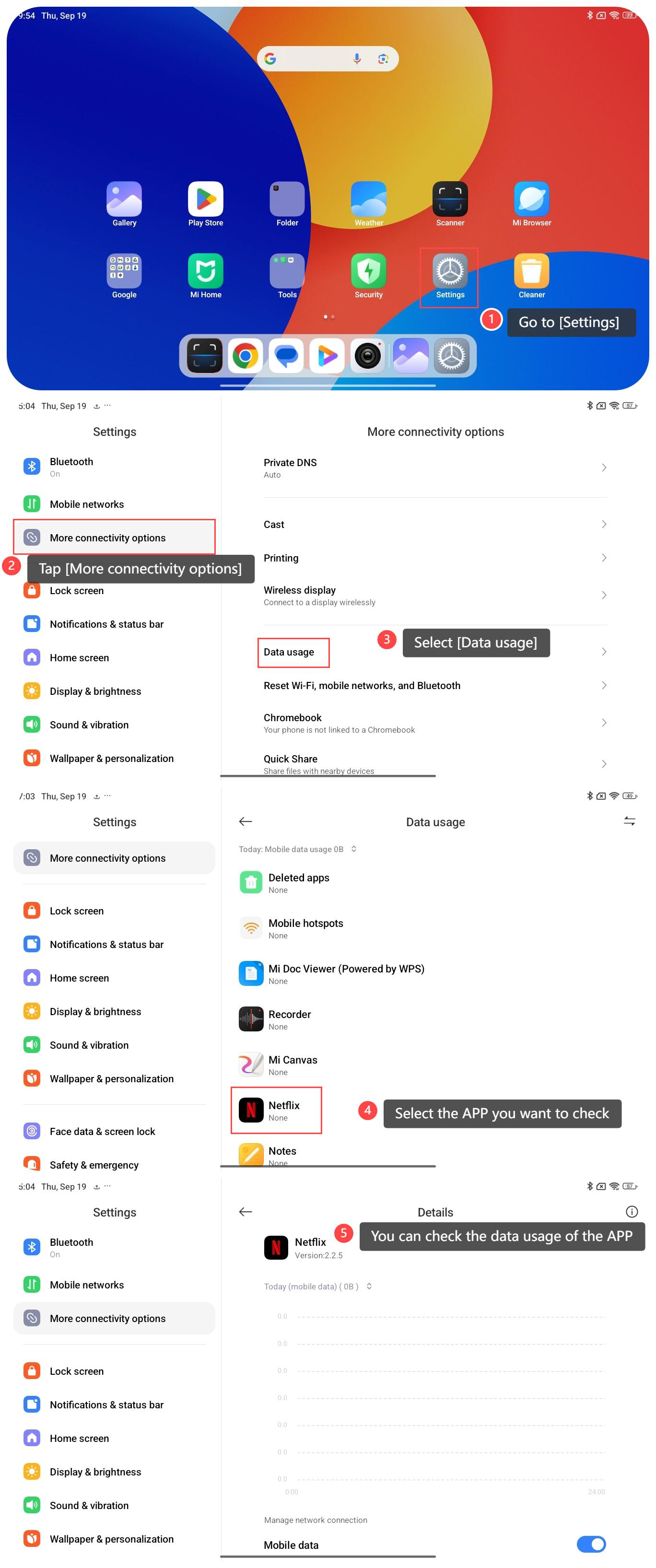 Để kiểm tra mức sử dụng dữ liệu trên máy tính bảng của bạn, vui lòng tham khảo