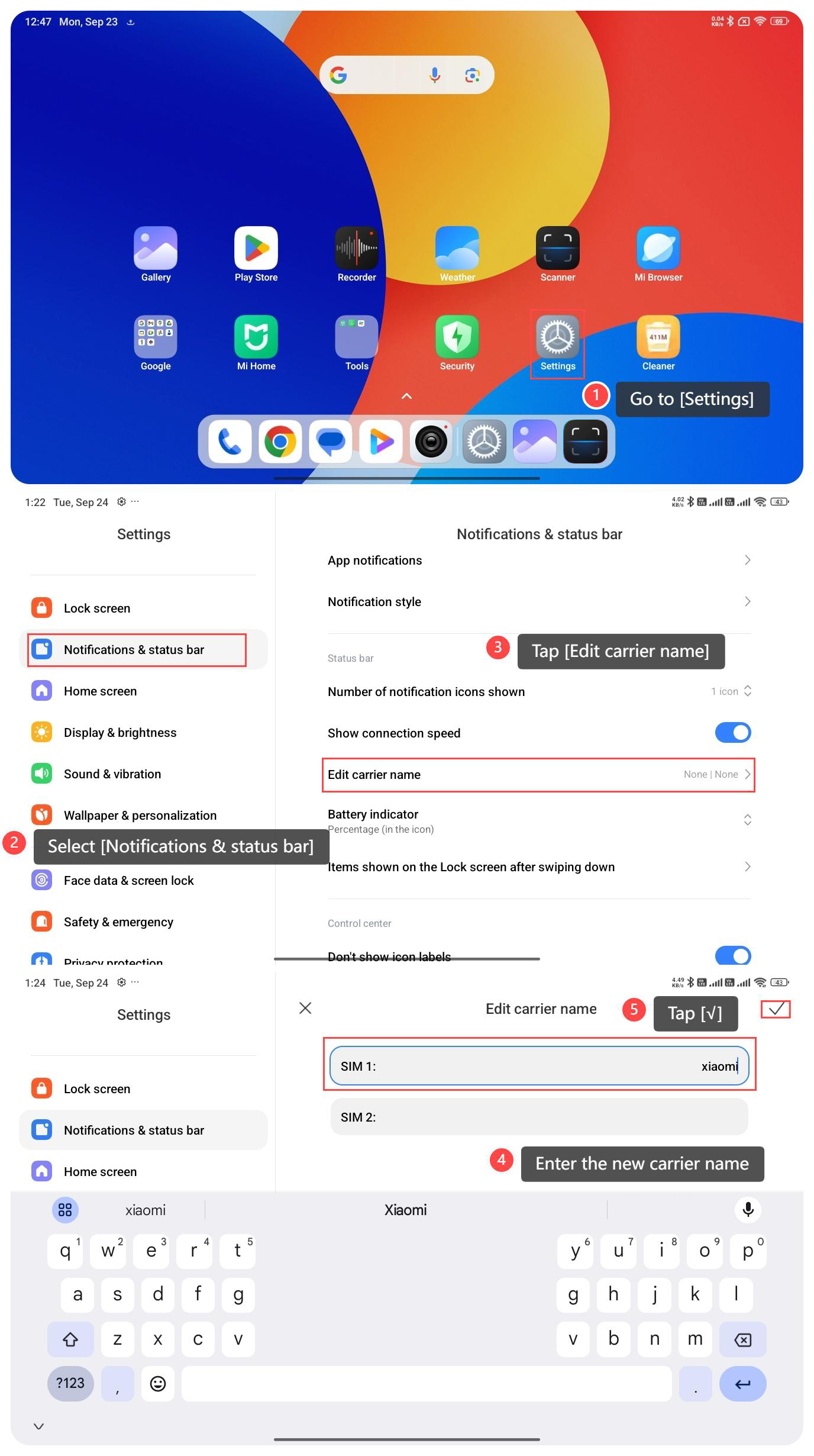 Để chỉnh sửa tên nhà cung cấp dịch vụ trên máy tính bảng của bạn, vui lòng tham khảo các bước sau: