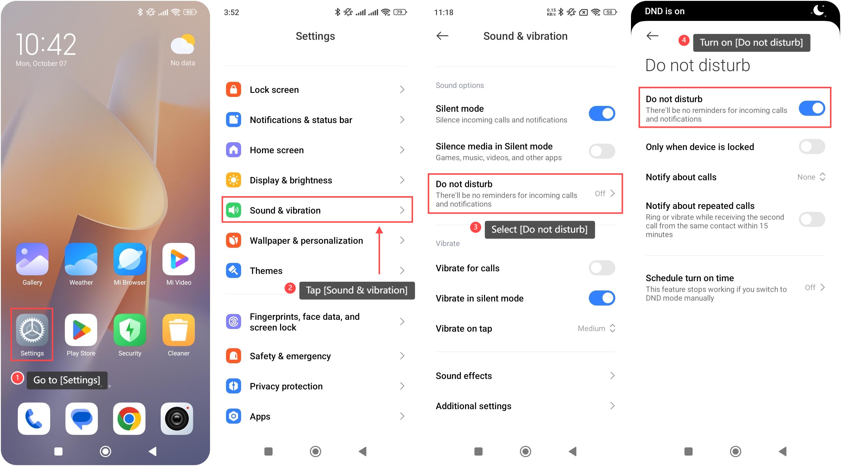Để bật hoặc tắt Không làm phiền trên điện thoại của bạn, vui lòng tham khảo các phương pháp sau: