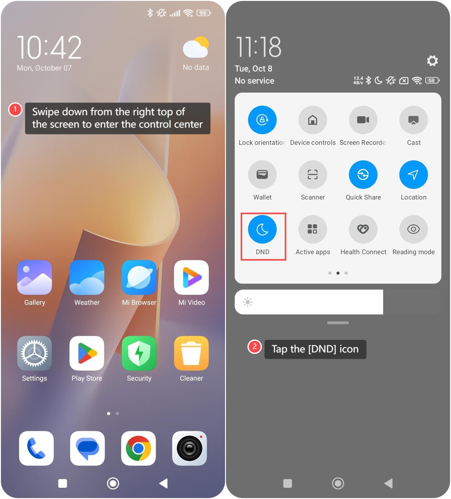 2. Nhấn vào biểu tượng [DND] để bật chức năng Không làm phiền.