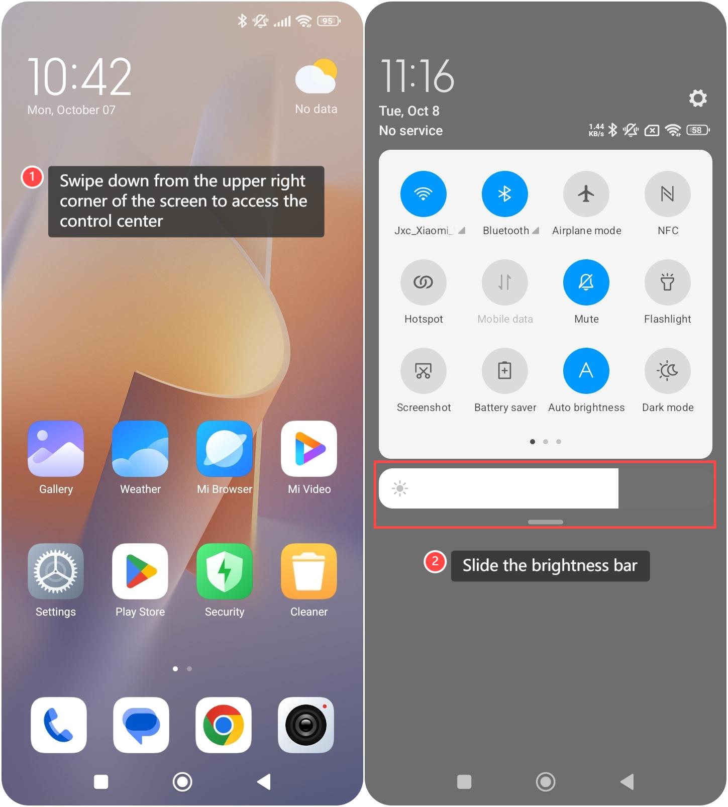 2. Trượt thanh độ sáng để điều chỉnh độ sáng màn hình.