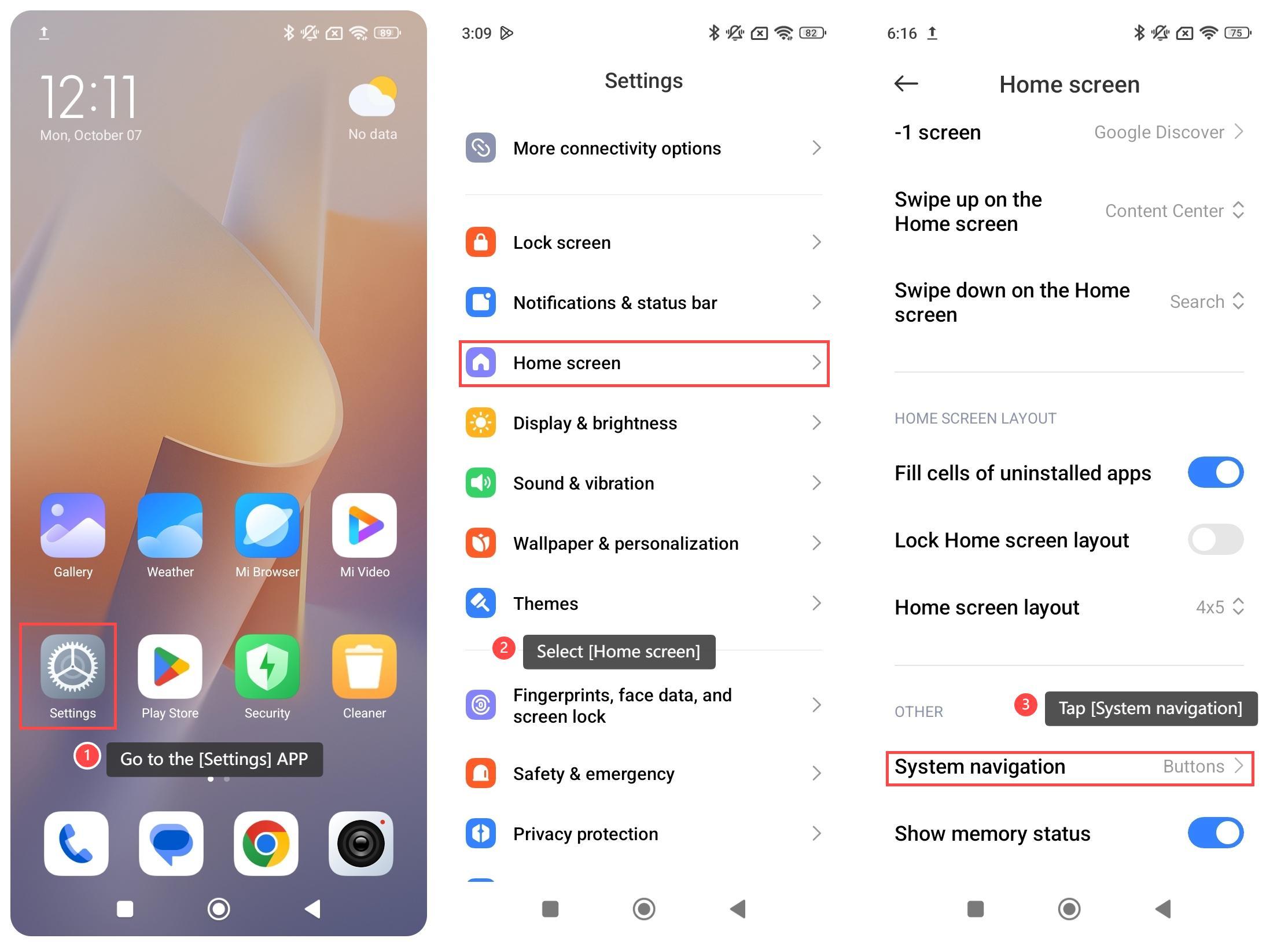 4. Chọn [Các nút]. Sau khi được chọn, sẽ có ba nút (nút Quay lại, nút Home và nút Menu) ở cuối màn hình;