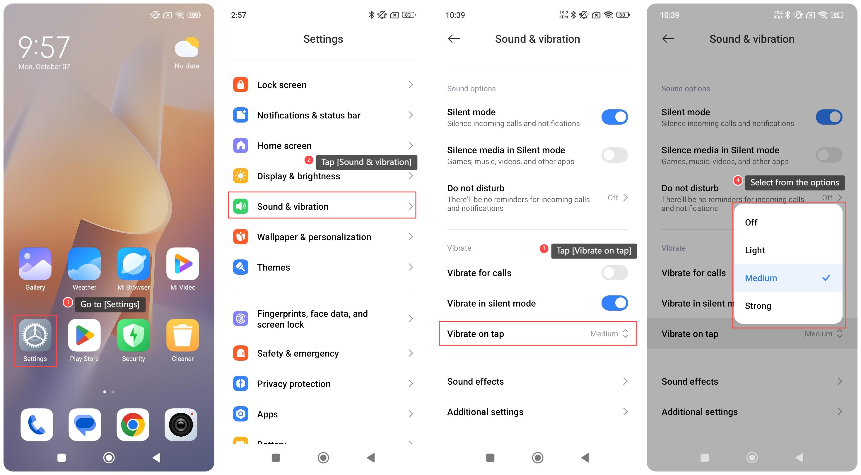 Để đặt khẩu phần rung khi chạm vào điện thoại của bạn, vui lòng tham khảo các bước sau: