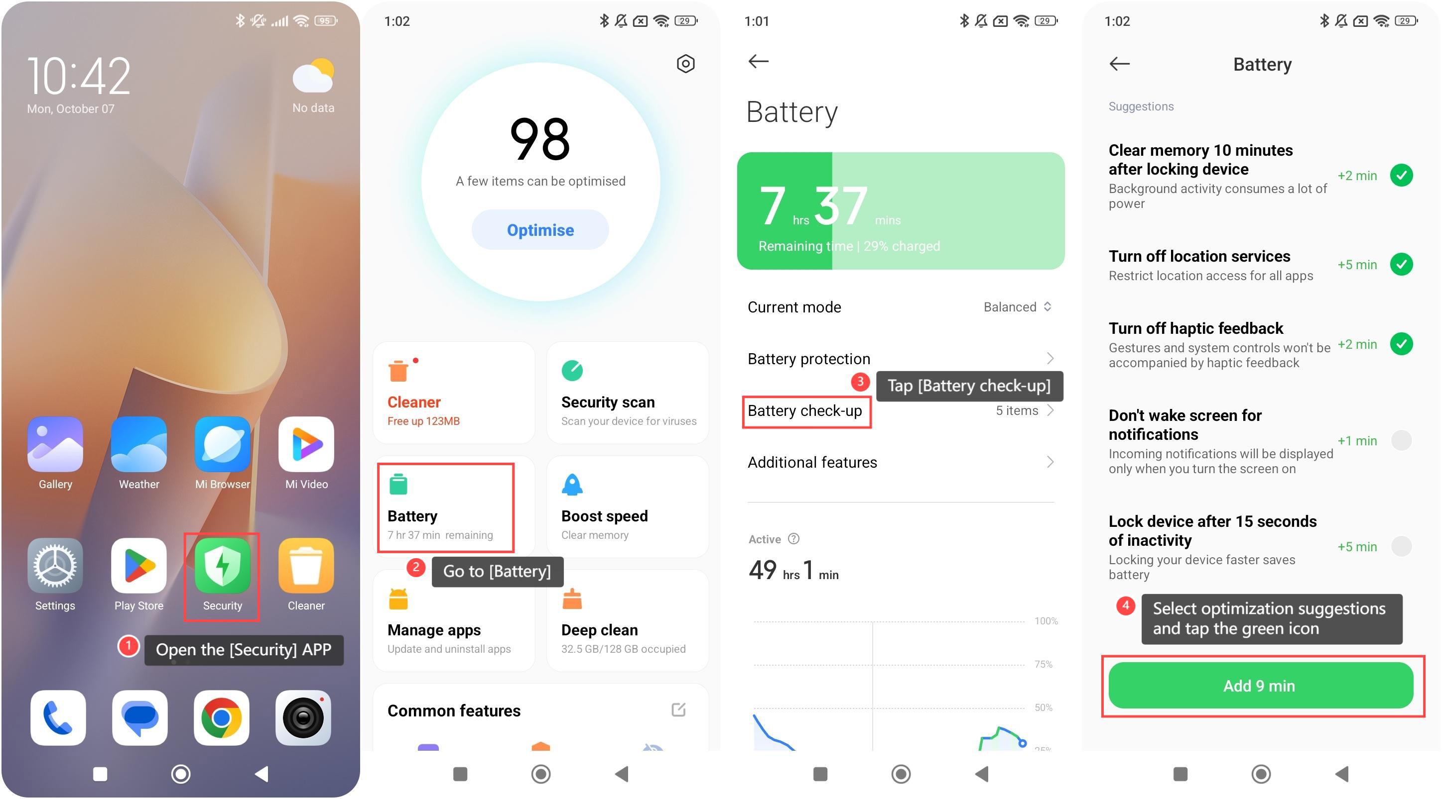 Để tối ưu hóa việc sử dụng pin theo cách thủ công trên điện thoại của bạn, vui lòng tham khảo các phương pháp sau: