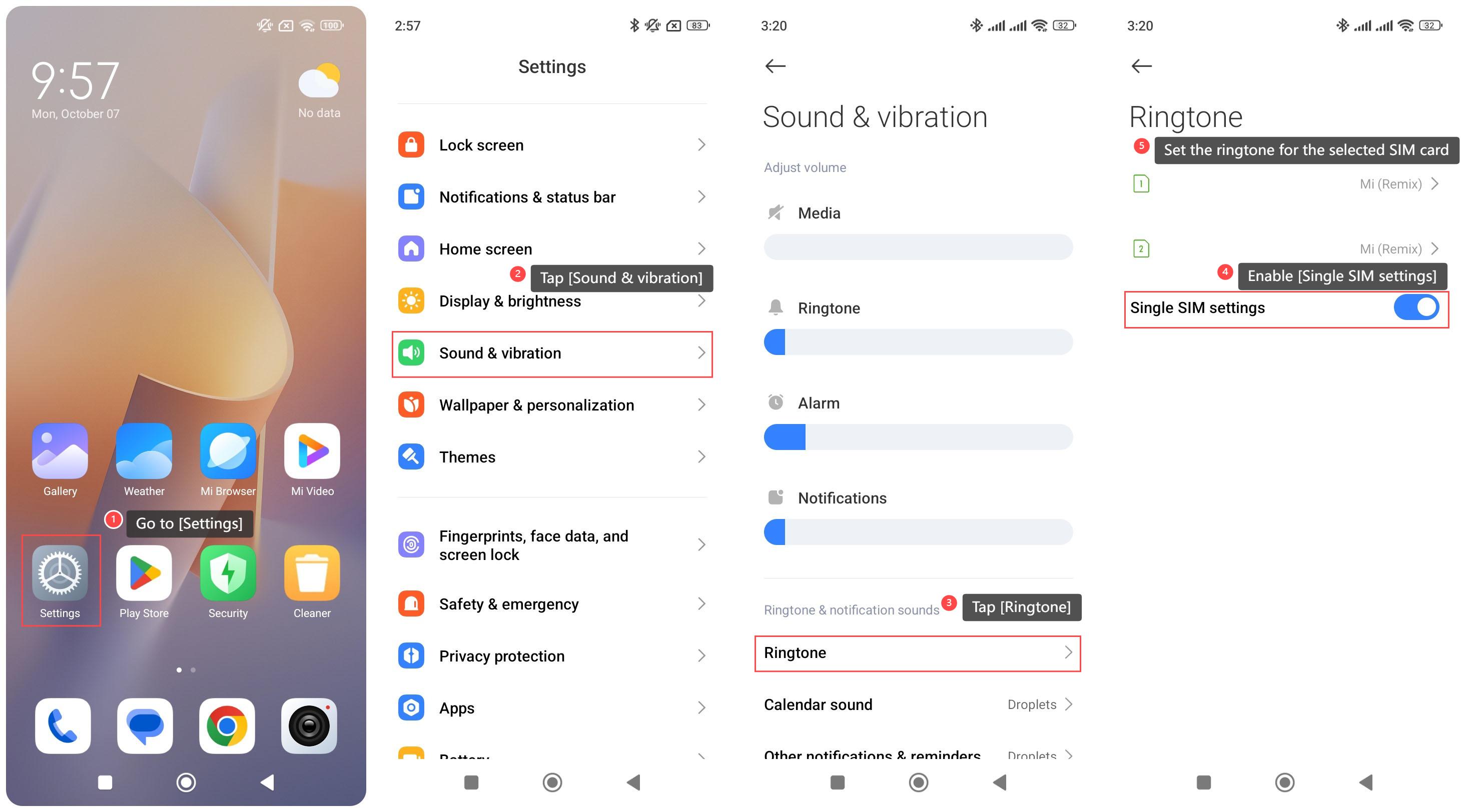 Để đặt nhạc chuông riêng cho thẻ SIM kép trên điện thoại của bạn, vui lòng tham khảo các bước sau: