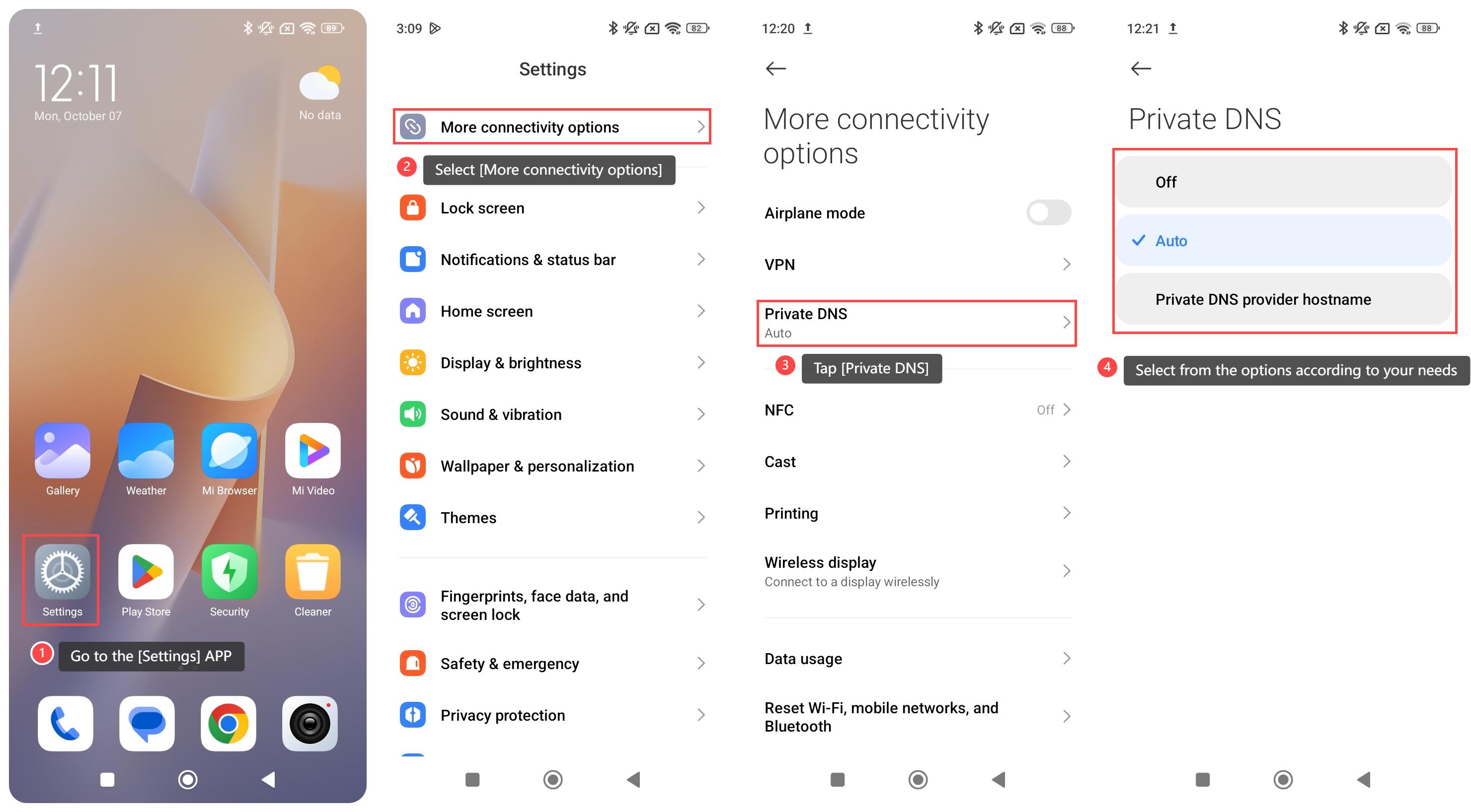 Để đặt DNS riêng trên điện thoại của bạn, vui lòng tham khảo các bước sau: