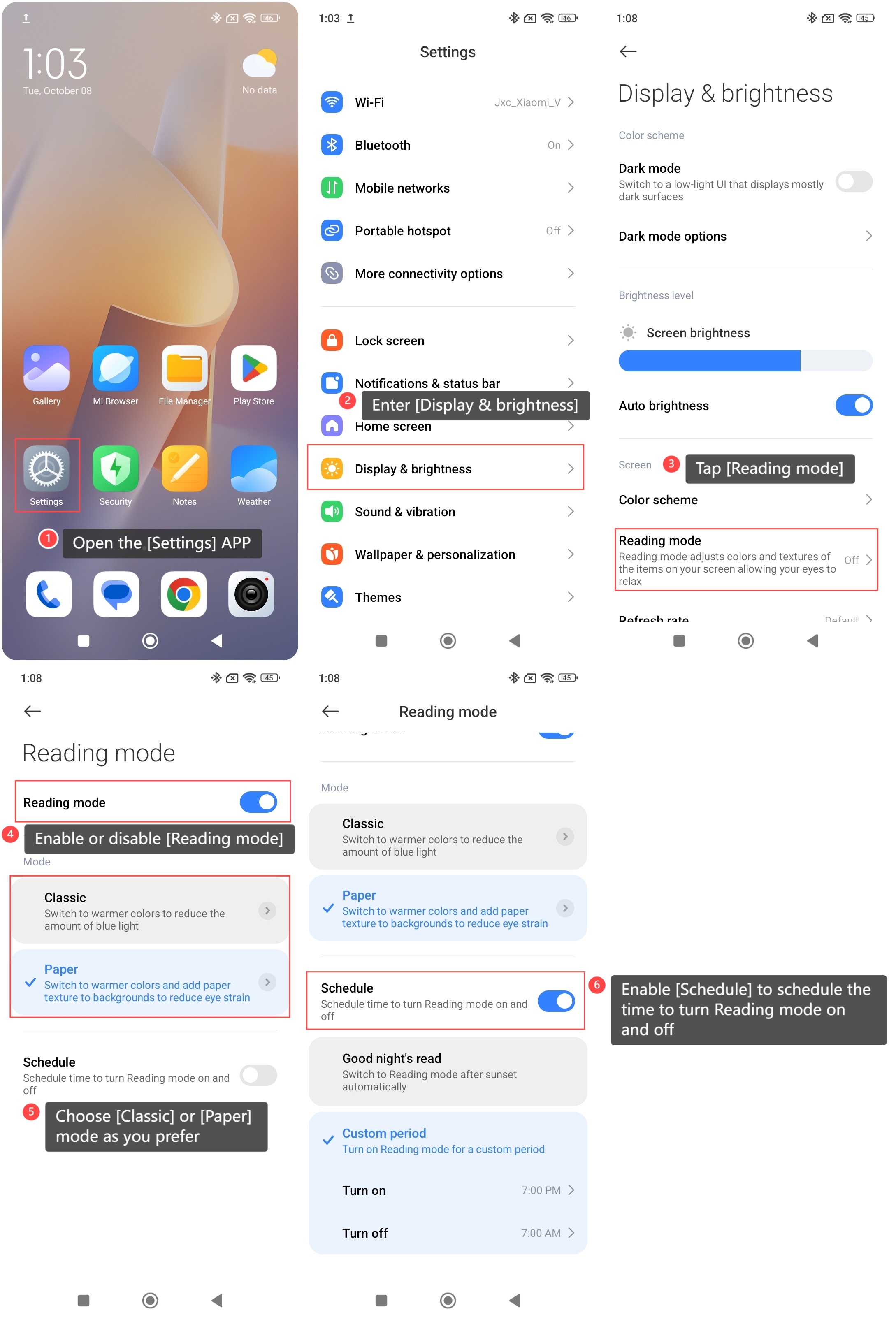 1. Chế độ đọc cổ điển có thể chuyển màn hình sang màu ấm hơn để giảm lượng ánh sáng xanh;