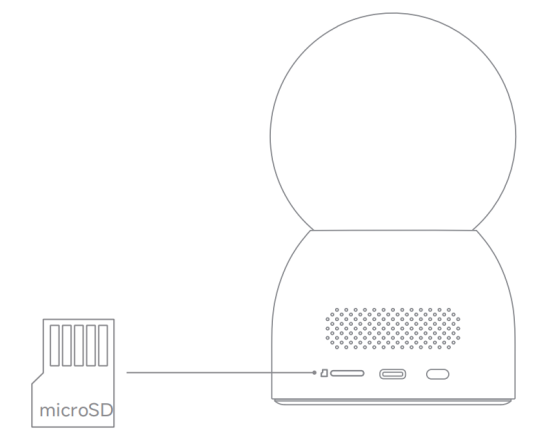 Để lắp Xiaomi Smart Camera C700, bạn cần ngắt kết nối máy ảnh khỏi nguồn điện và lắp thẻ nhớ microSD với mặt tiếp xúc hướng lên trên.