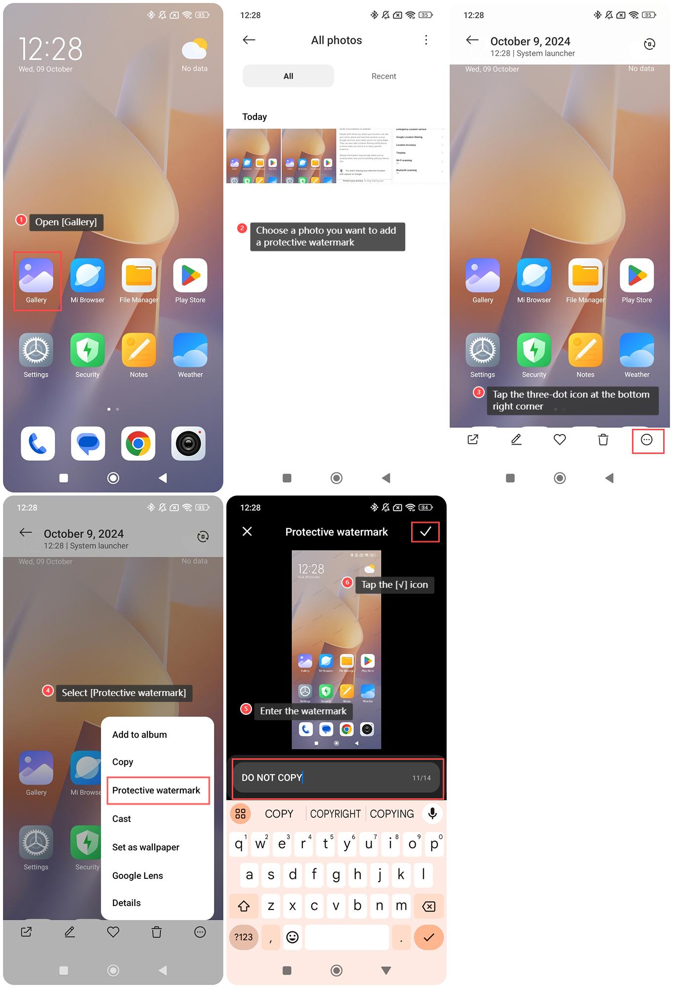 Để thêm hình mờ bảo vệ cho ảnh ở Redmi 13C, vui lòng tham khảo các bước sau: