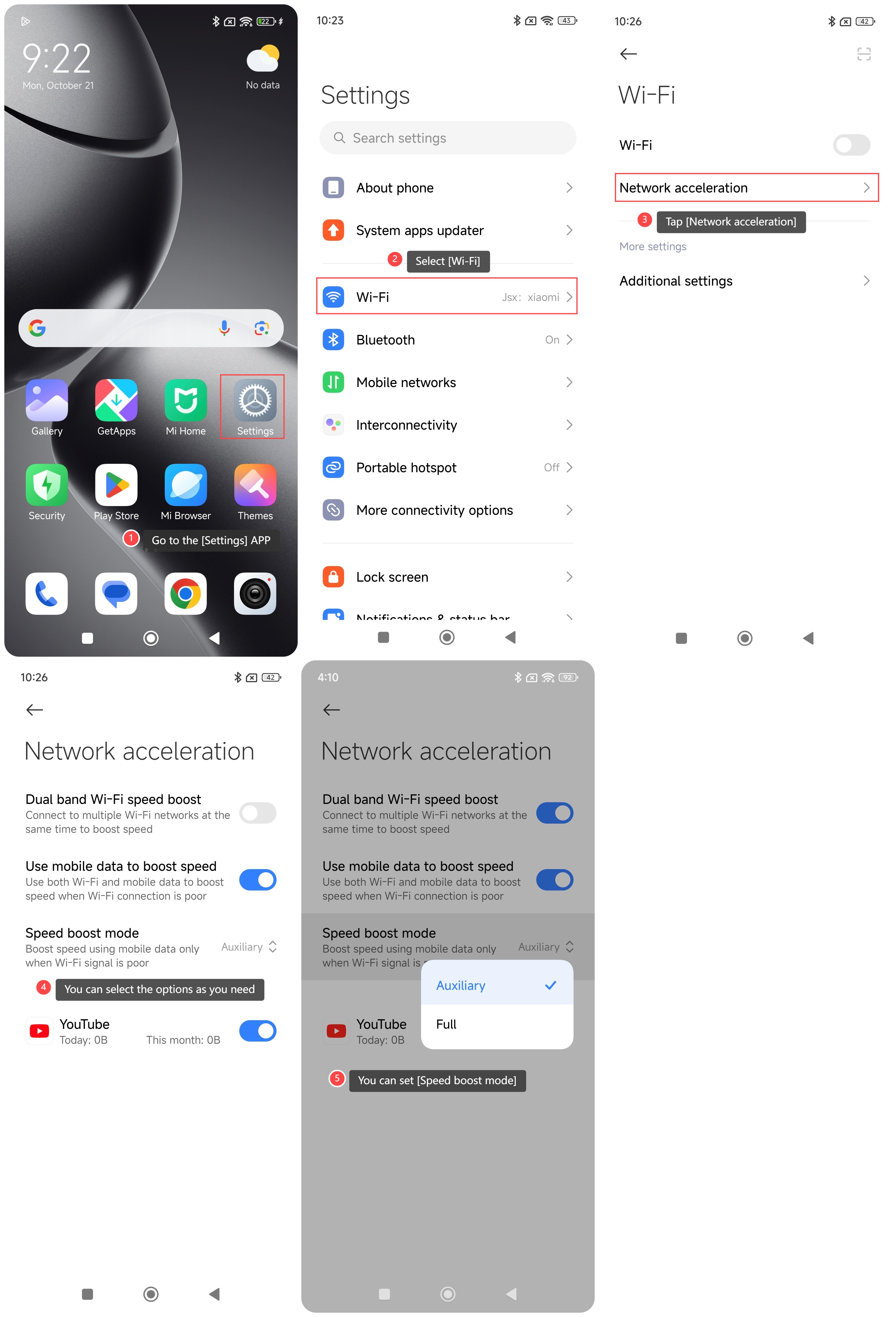 5. Nếu bạn chọn [Sử dụng dữ liệu di động để tăng tốc độ], bạn có thể đặt [Chế độ tăng tốc độ] ([Phụ trợ] hoặc [Đầy đủ]).