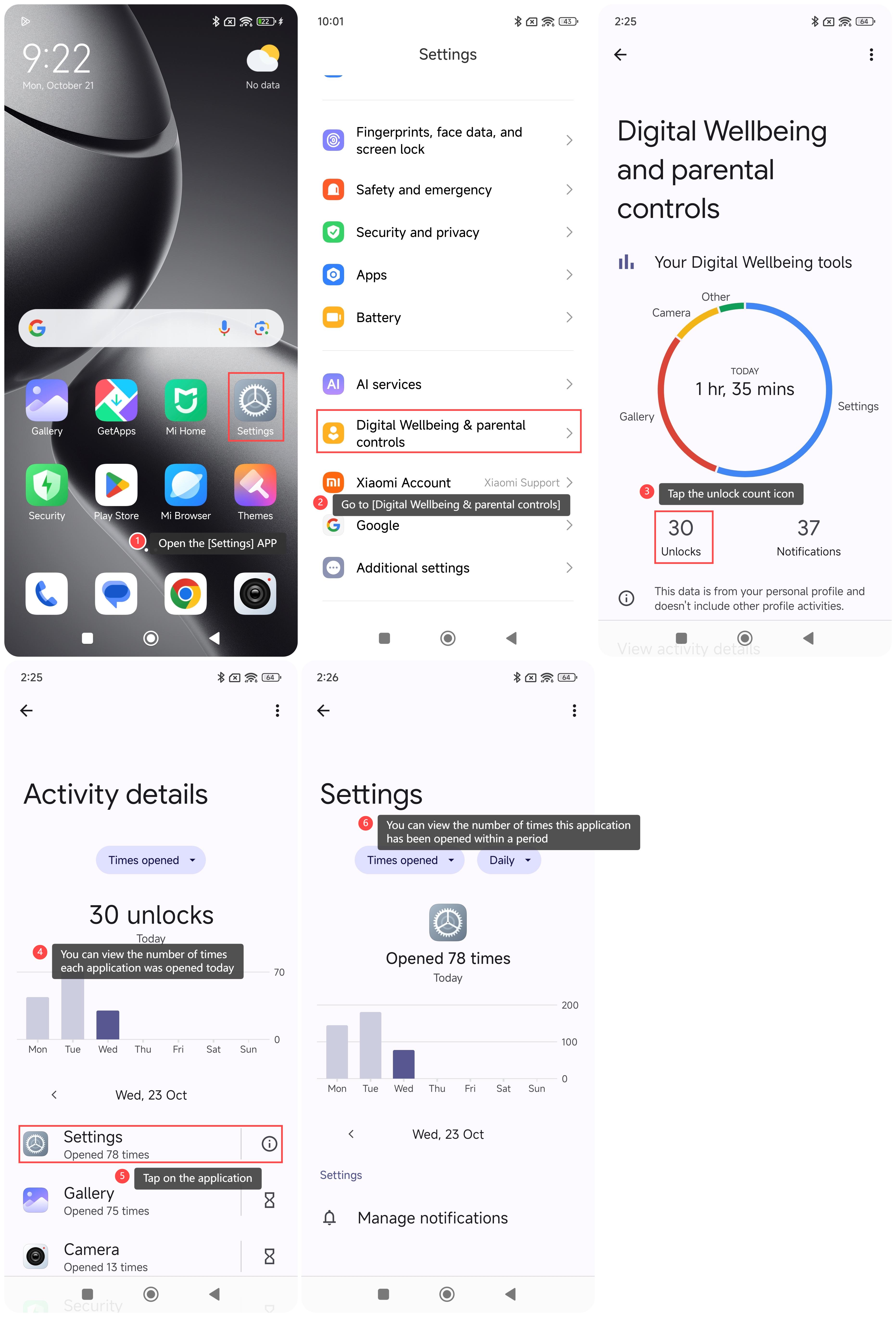 Xiaomi 14T Pro có thể theo dõi số lần bạn đã mở ứng dụng. Tính năng này cho phép bạn theo dõi các mẫu sử dụng ứng dụng, bao gồm tần suất bạn mở các ứng dụng cụ thể và lượng thời gian bạn dành cho chúng. Thông tin này có thể giúp bạn quản lý thời gian sử dụng thiết bị một cách hiệu quả và xác định ứng dụng nào bạn sử dụng thường xuyên nhất, cho phép bạn đưa ra quyết định sáng suốt về thói quen sử dụng của mình. Bằng cách phân tích dữ liệu này, bạn có thể ưu tiên các ứng dụng thiết yếu và hạn chế quyền truy cập vào những ứng dụng có thể gây mất tập trung hoặc không cần thiết.