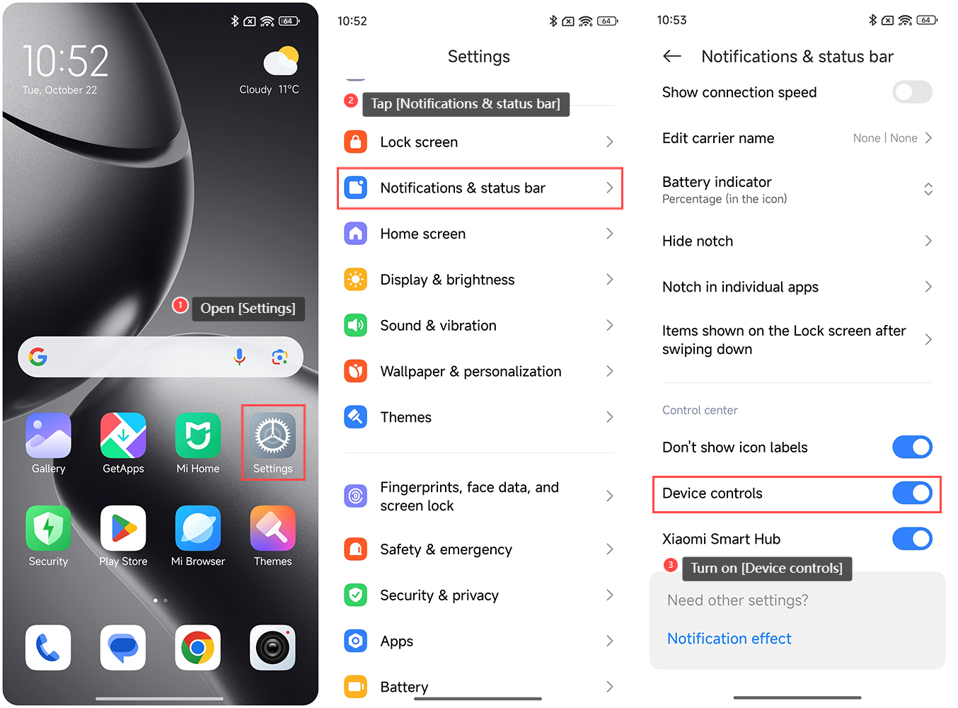 Để bật tiện ích Mi Home APP trong trung tâm điều khiển của Xiaomi 14T, vui lòng tham khảo các bước sau: