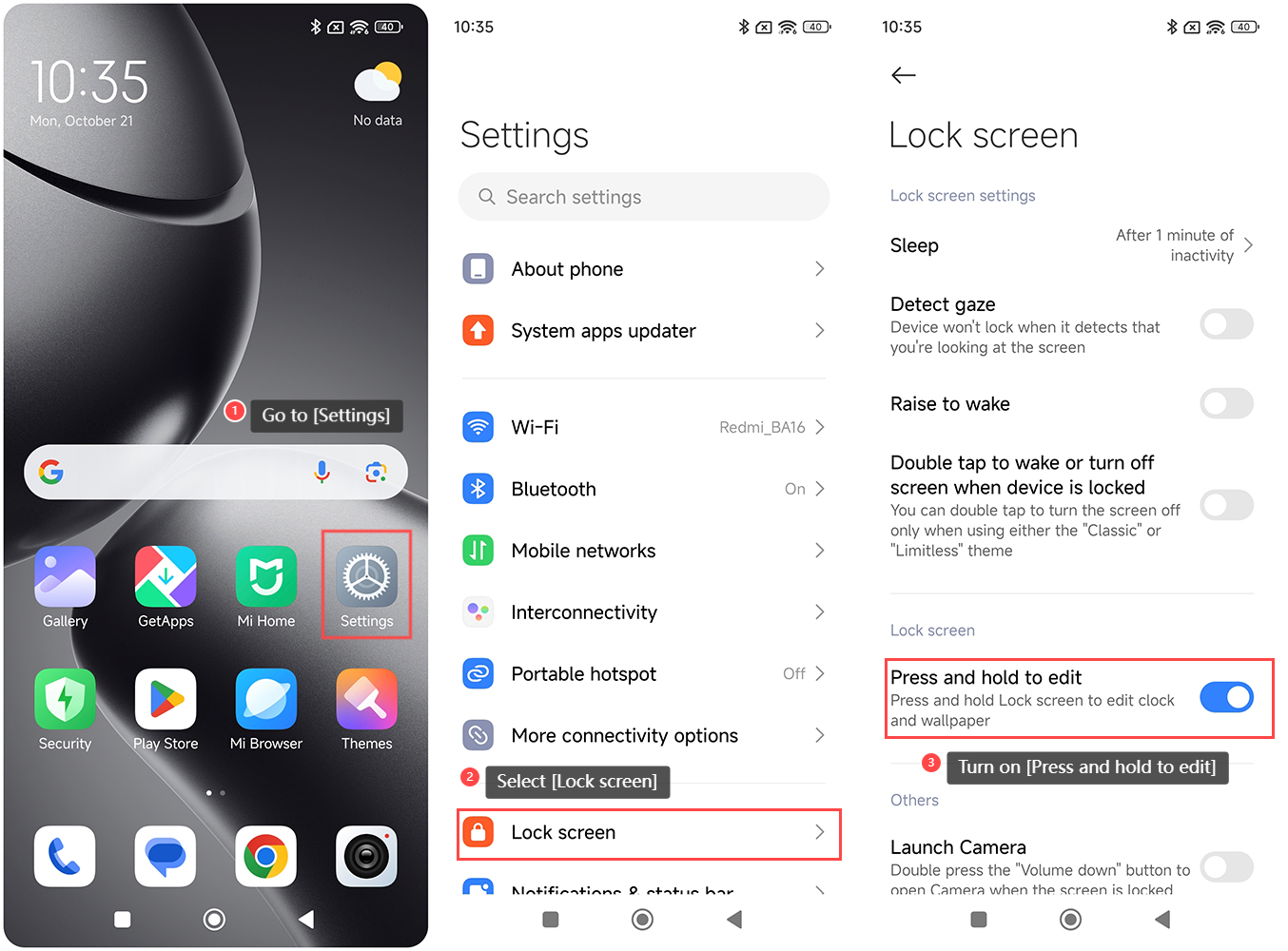 Để chỉnh sửa hình nền bằng cách nhấn và giữ màn hình khóa, vui lòng tham khảo các bước sau: