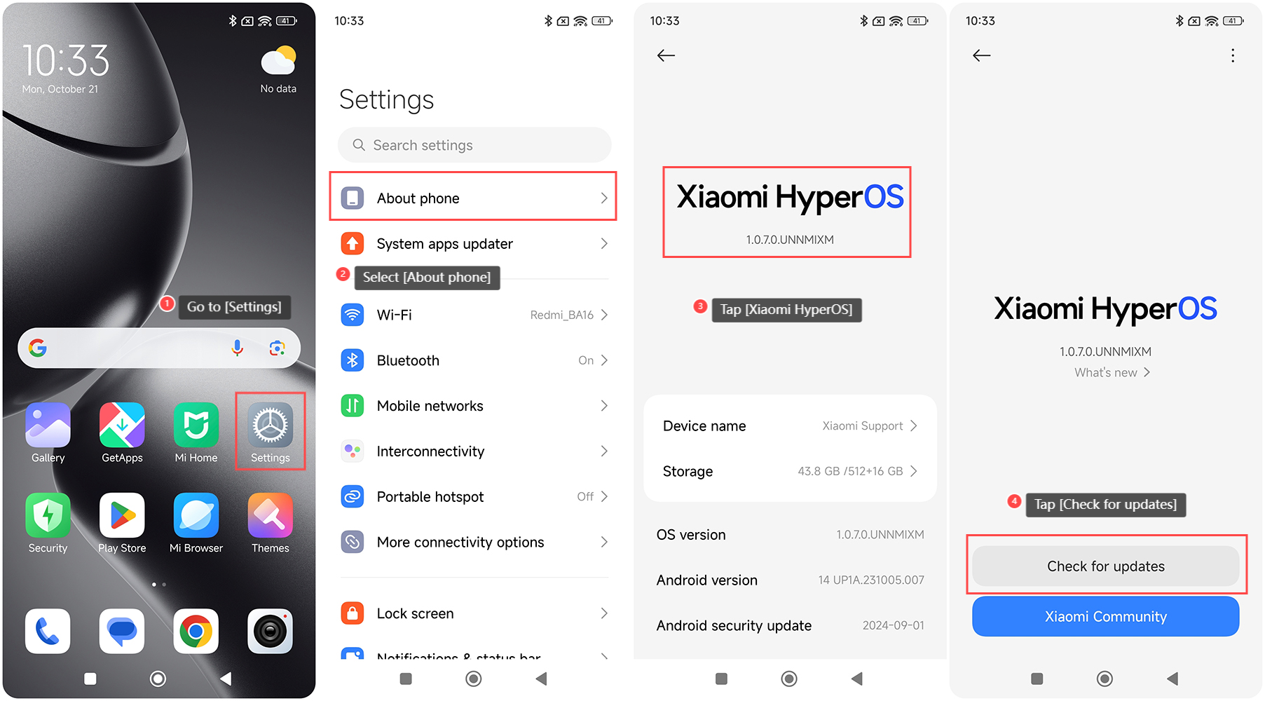 Để cập nhật hệ thống của Xiaomi 14T theo cách thủ công, vui lòng tham khảo các bước sau: