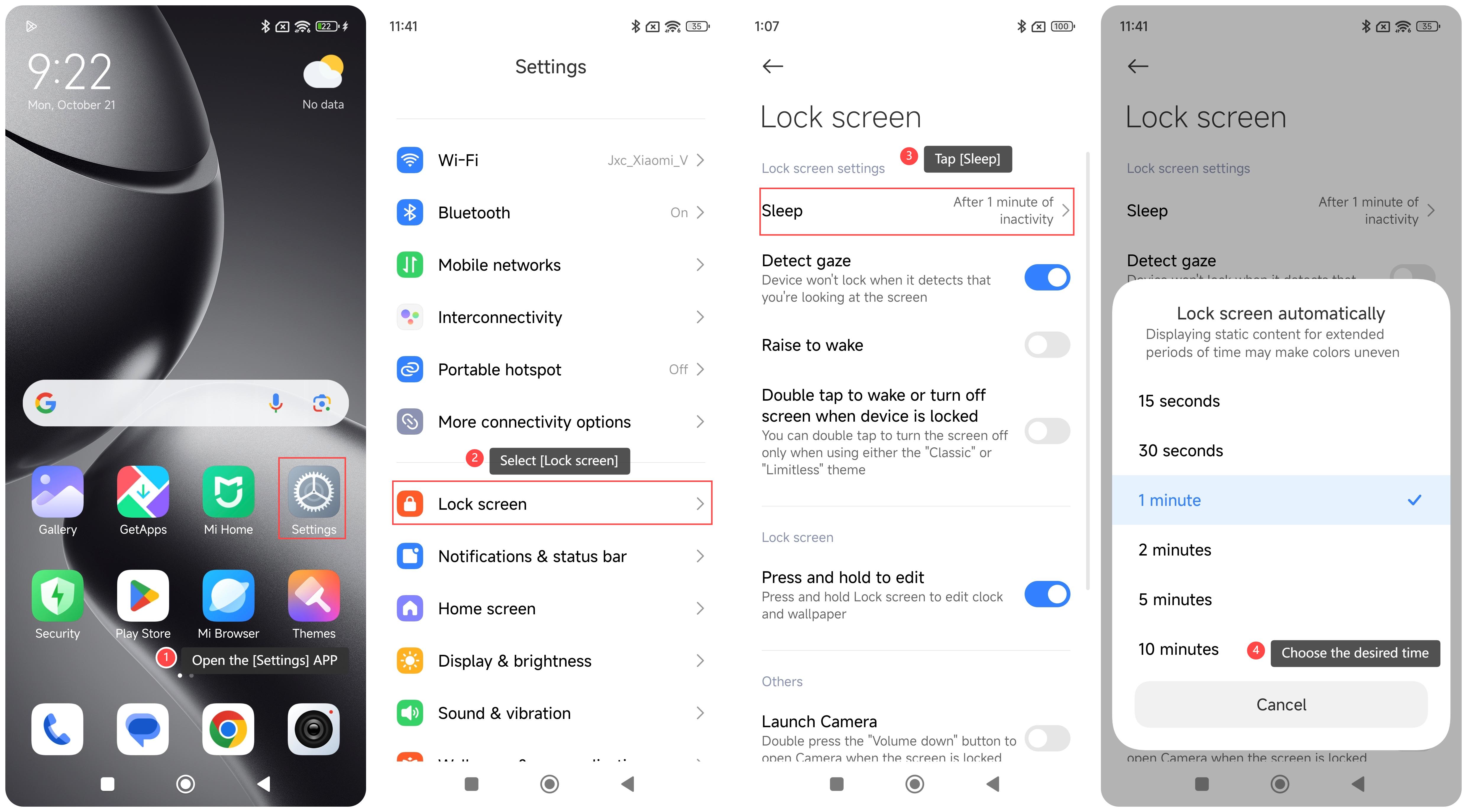 Chức năng thời gian ngủ trên Xiaomi 14T xác định thời gian màn hình vẫn bật khi không hoạt động trước khi tự động tắt để tiết kiệm pin.
