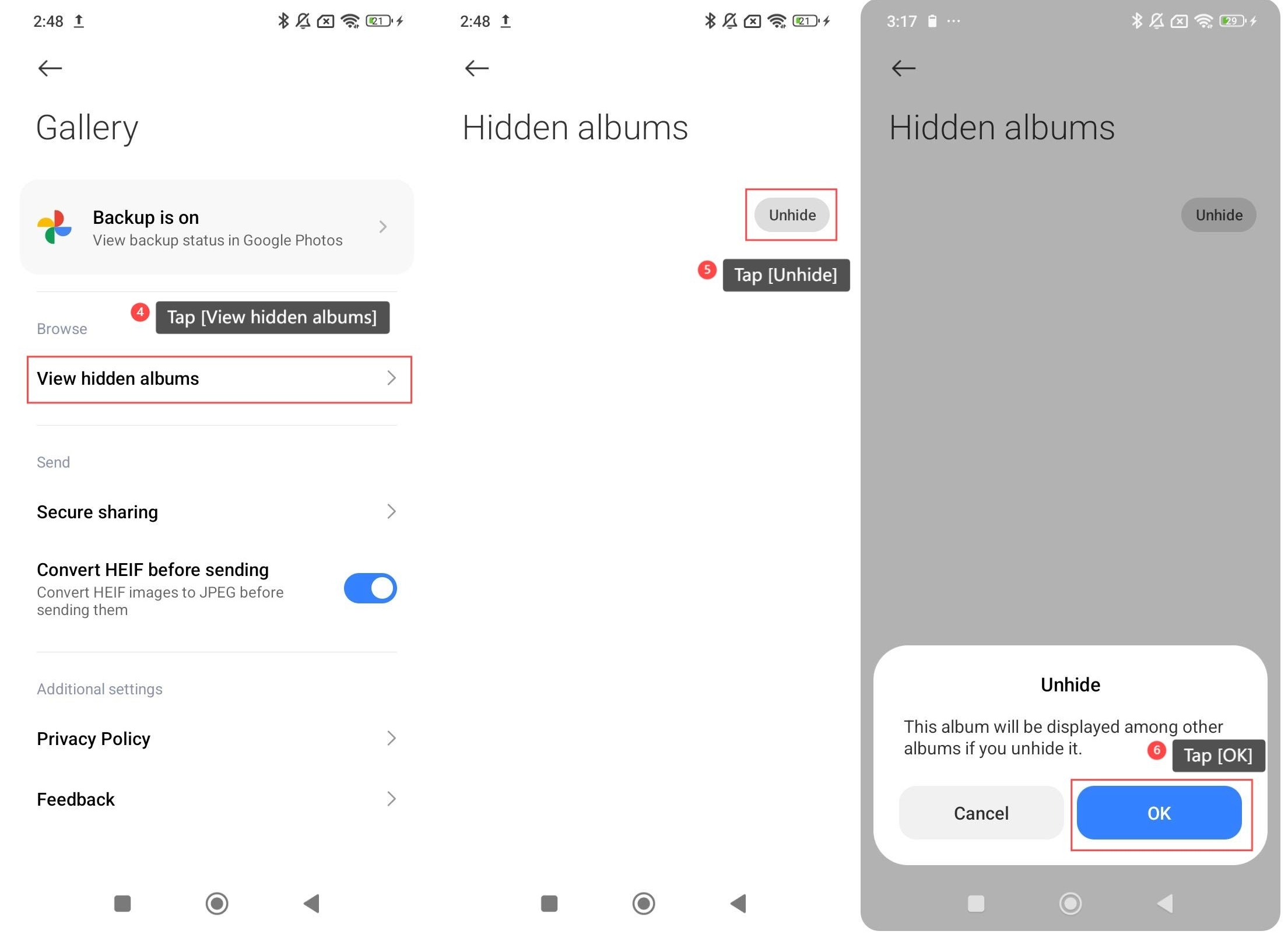 4. Nhấn vào [Xem album ẩn];