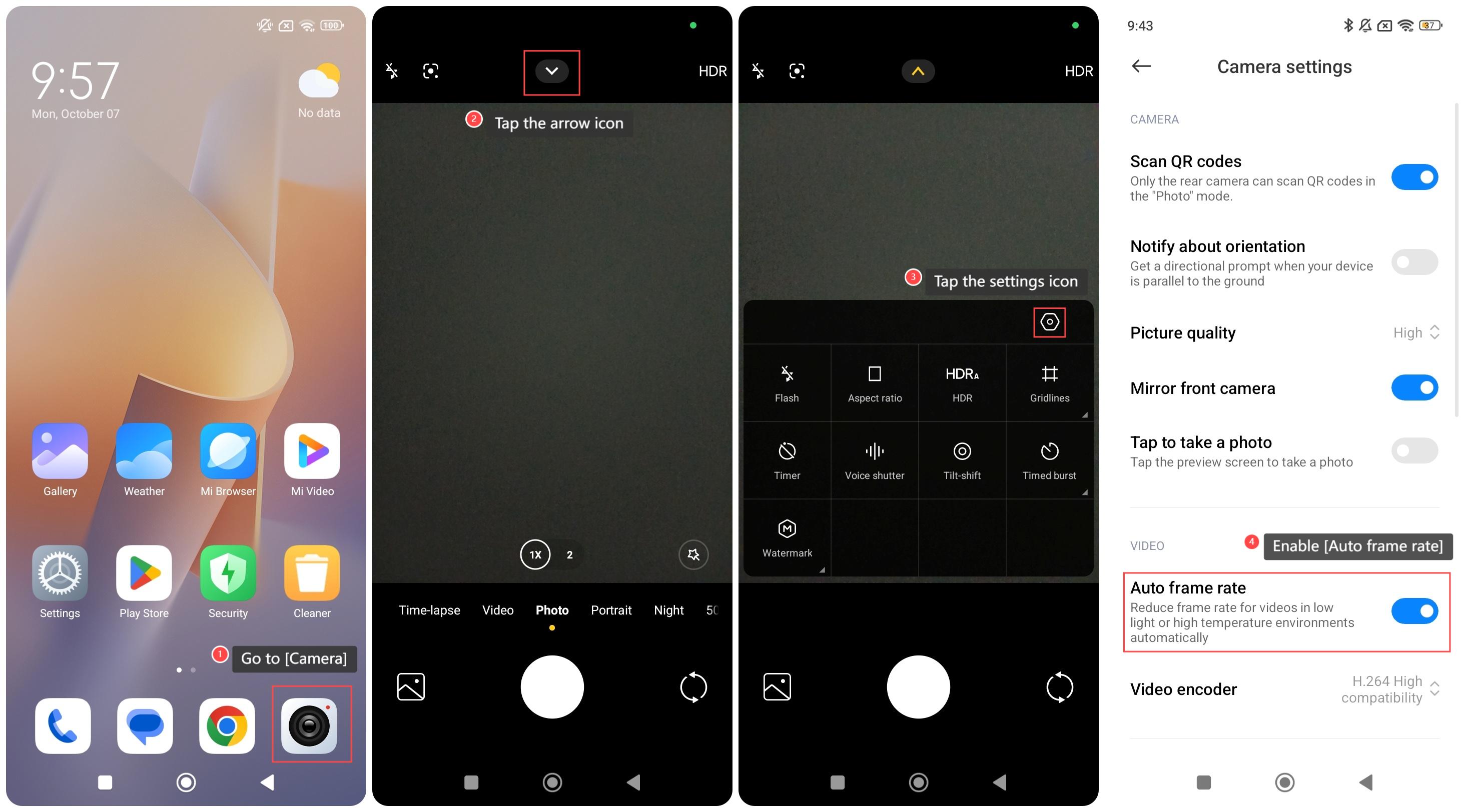 Để bật Tốc độ khung hình tự động trên điện thoại của bạn, vui lòng tham khảo các bước sau: