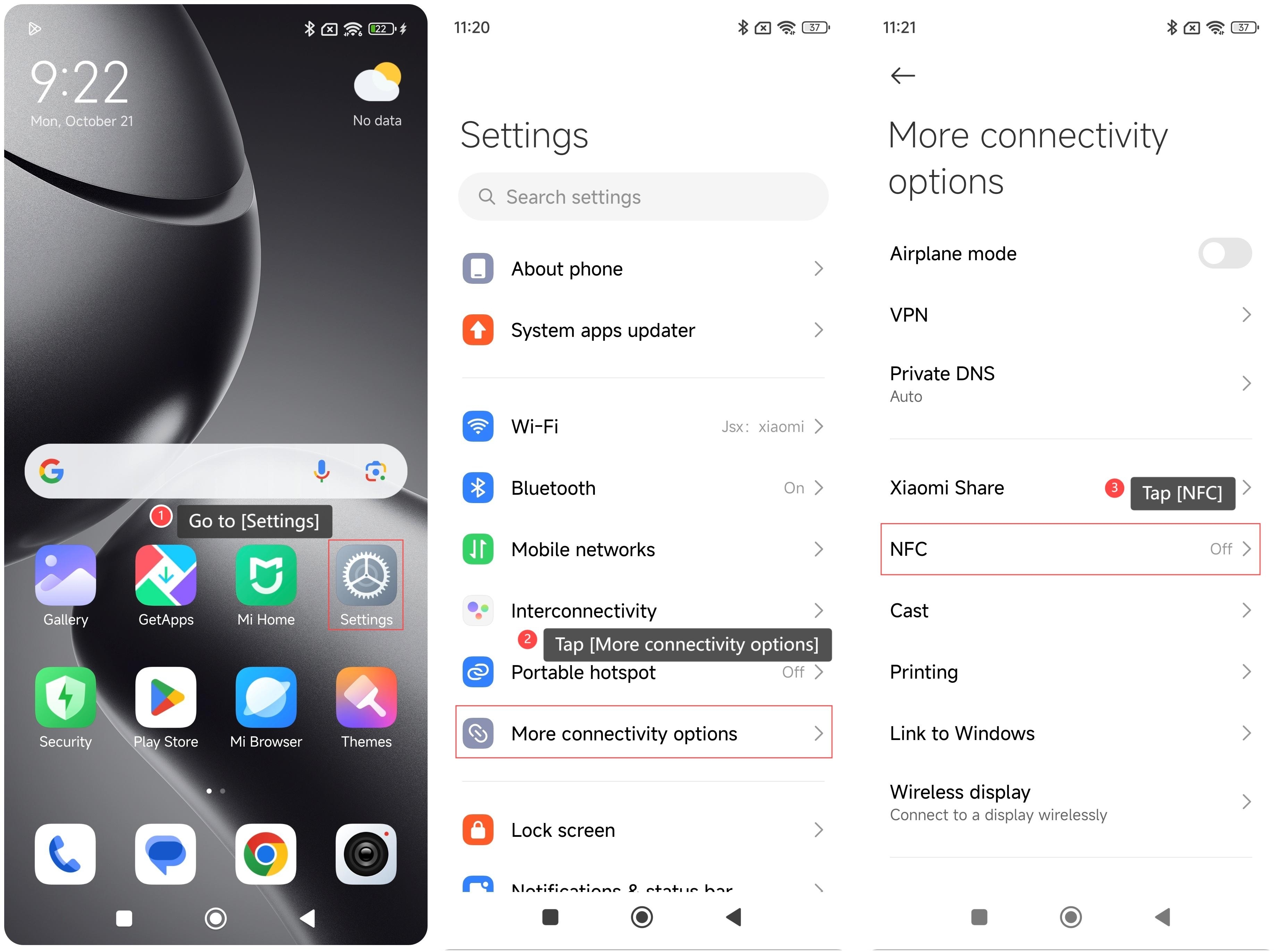 Để khôi phục chức năng NFC trên điện thoại của bạn, vui lòng tham khảo các bước sau: