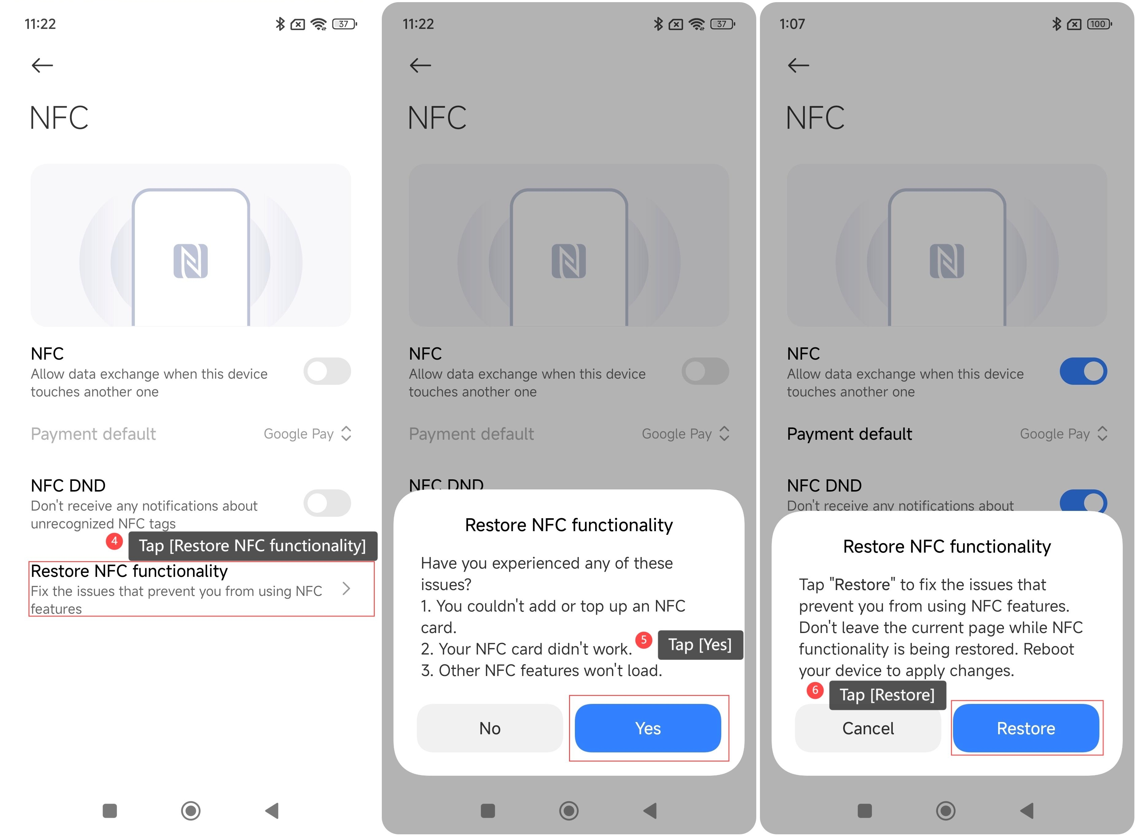 6. Cuối cùng, chạm vào [Khôi phục] để khắc phục các sự cố ngăn bạn sử dụng các tính năng NFC.