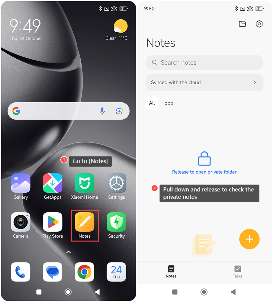 Làm thế nào để thực hiện và kiểm tra các ghi chú riêng tư trên Xiaomi 14T?