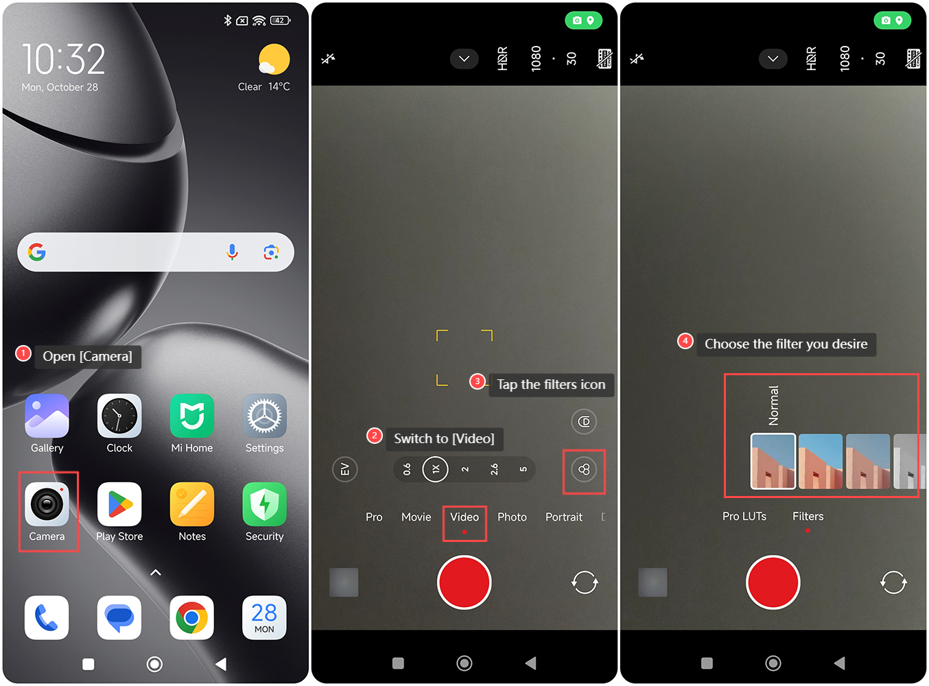 Để điều chỉnh bộ lọc trên điện thoại trong khi quay video, vui lòng tham khảo các bước sau: