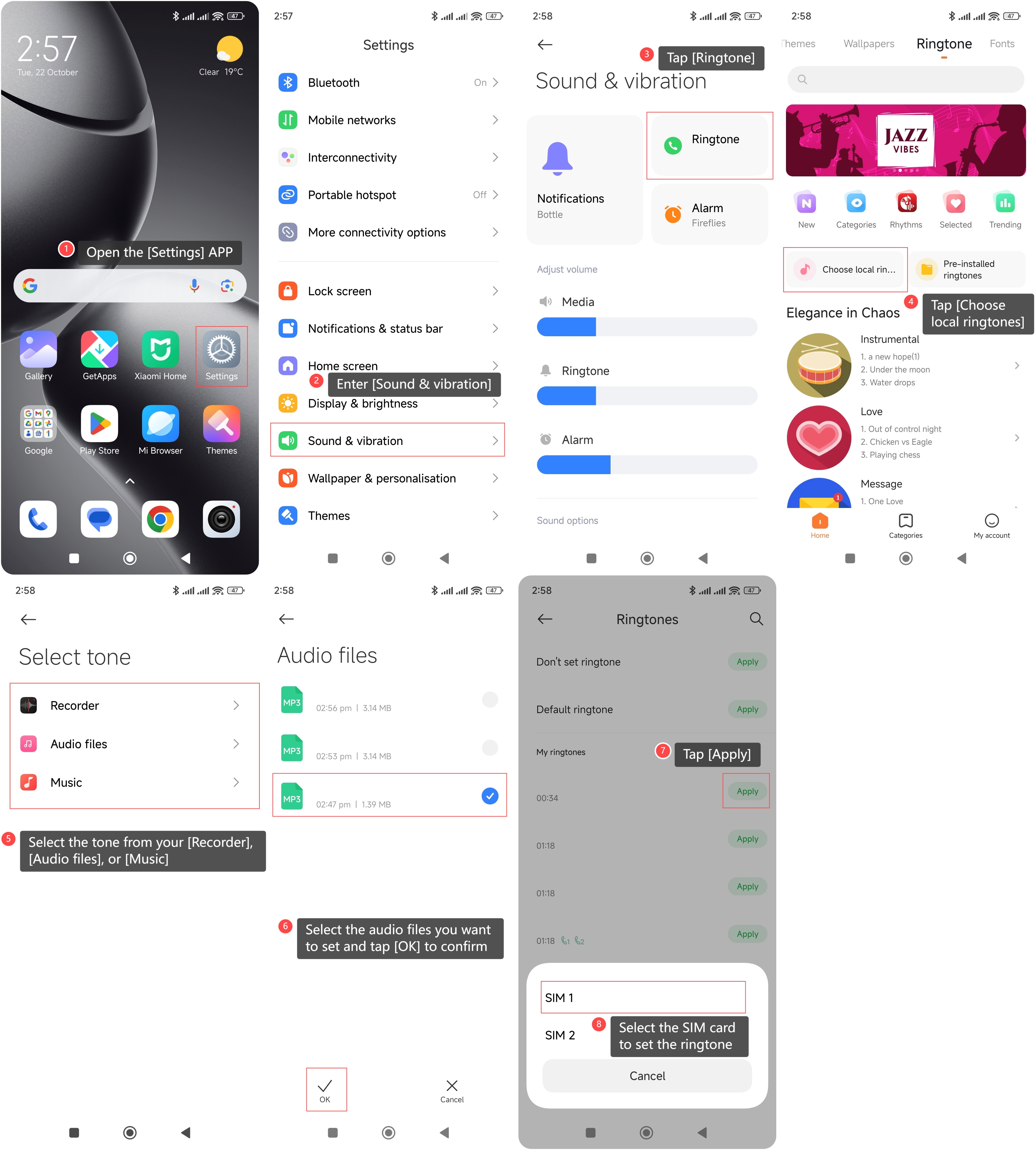 Để đặt nhạc chuông riêng cho thẻ SIM kép trên điện thoại của bạn, vui lòng tham khảo các phương pháp sau: