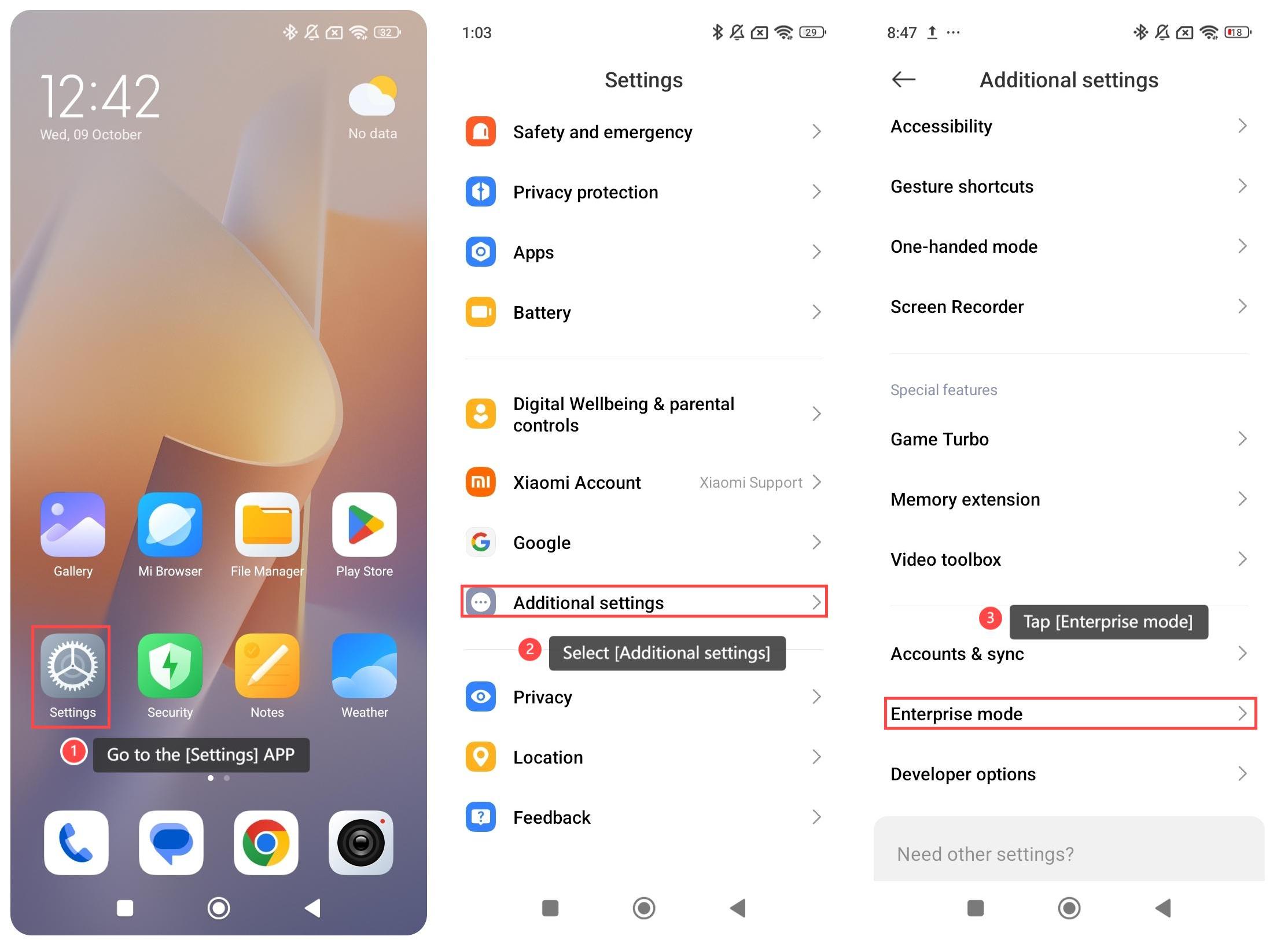 Để sử dụng chế độ Enterprise trên điện thoại, vui lòng tham khảo các bước sau:
