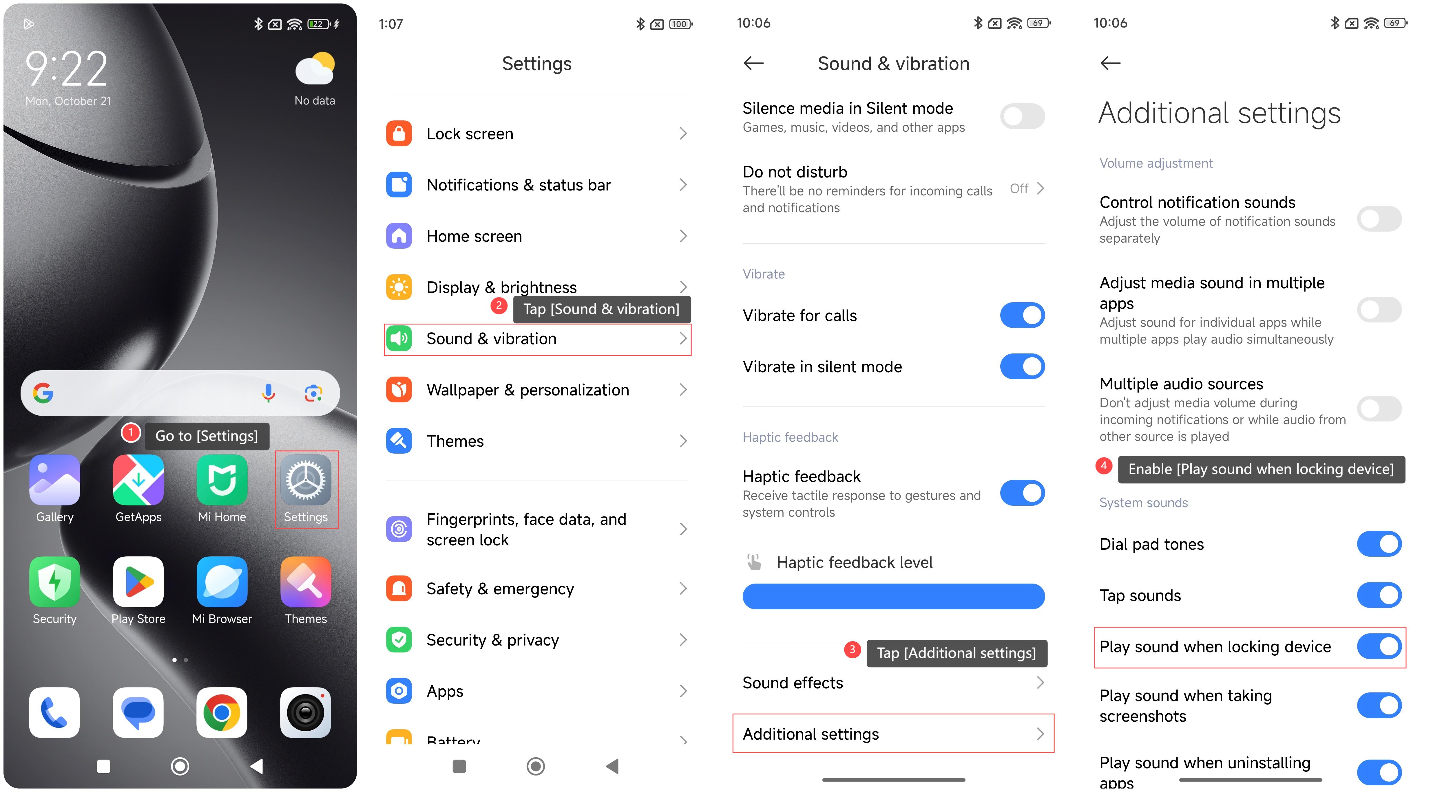 phát âm thanh khi khóa thiết bị, vui lòng tham khảo các bước sau: