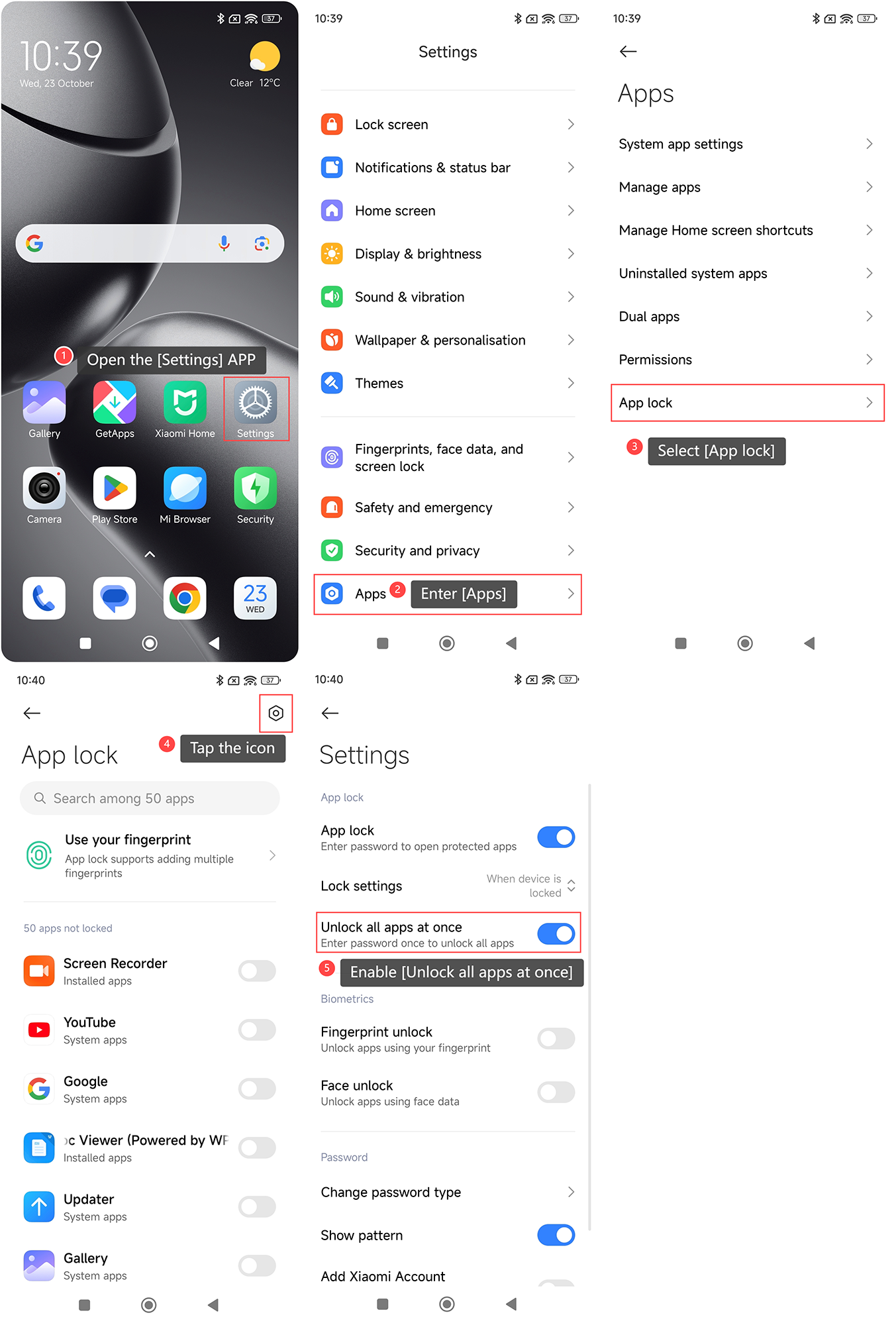 Để mở khóa tất cả các ứng dụngbằng cách nhập mật khẩu khóa PP một lần trên điện thoại của bạn, vui lòng tham khảo các bước sau: