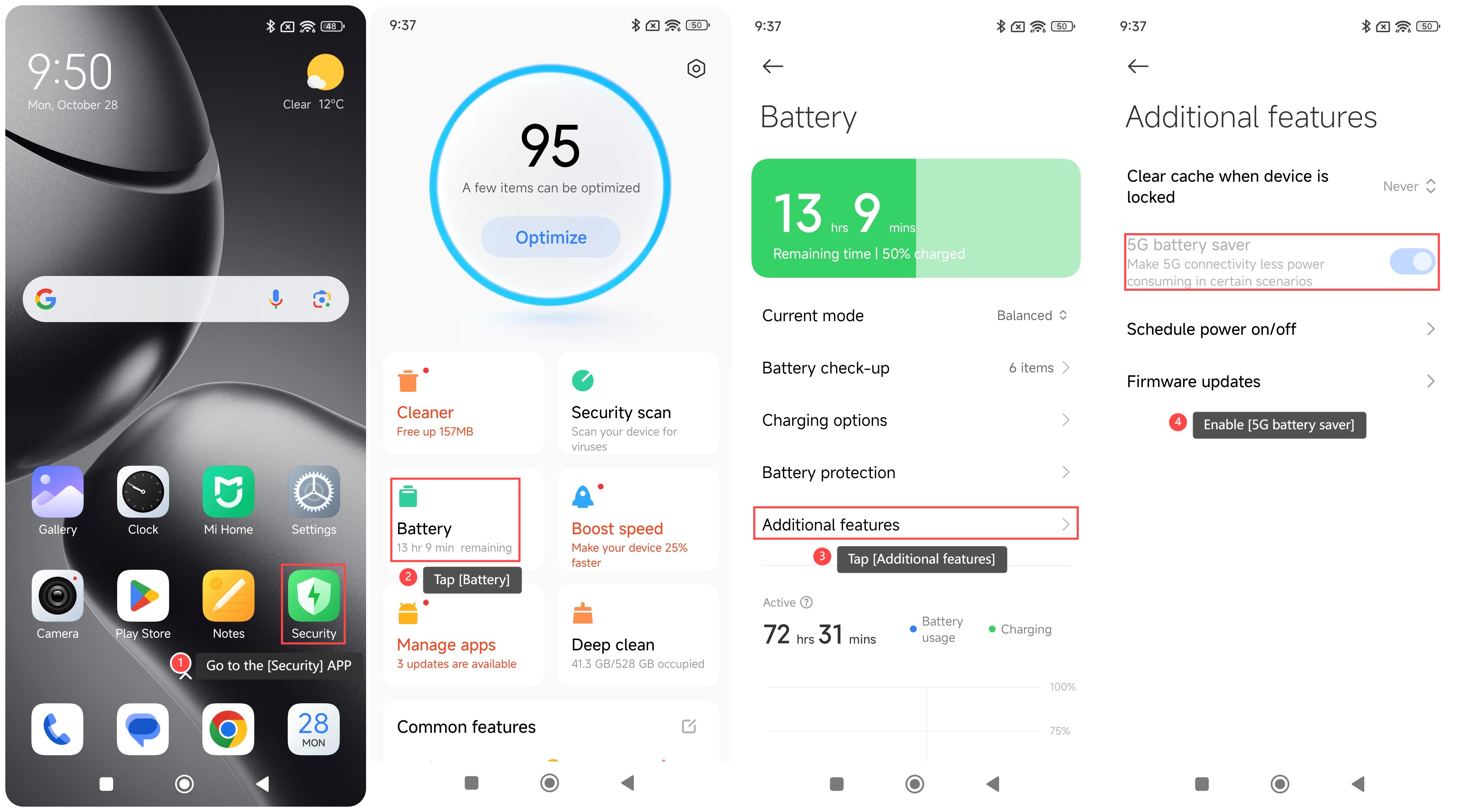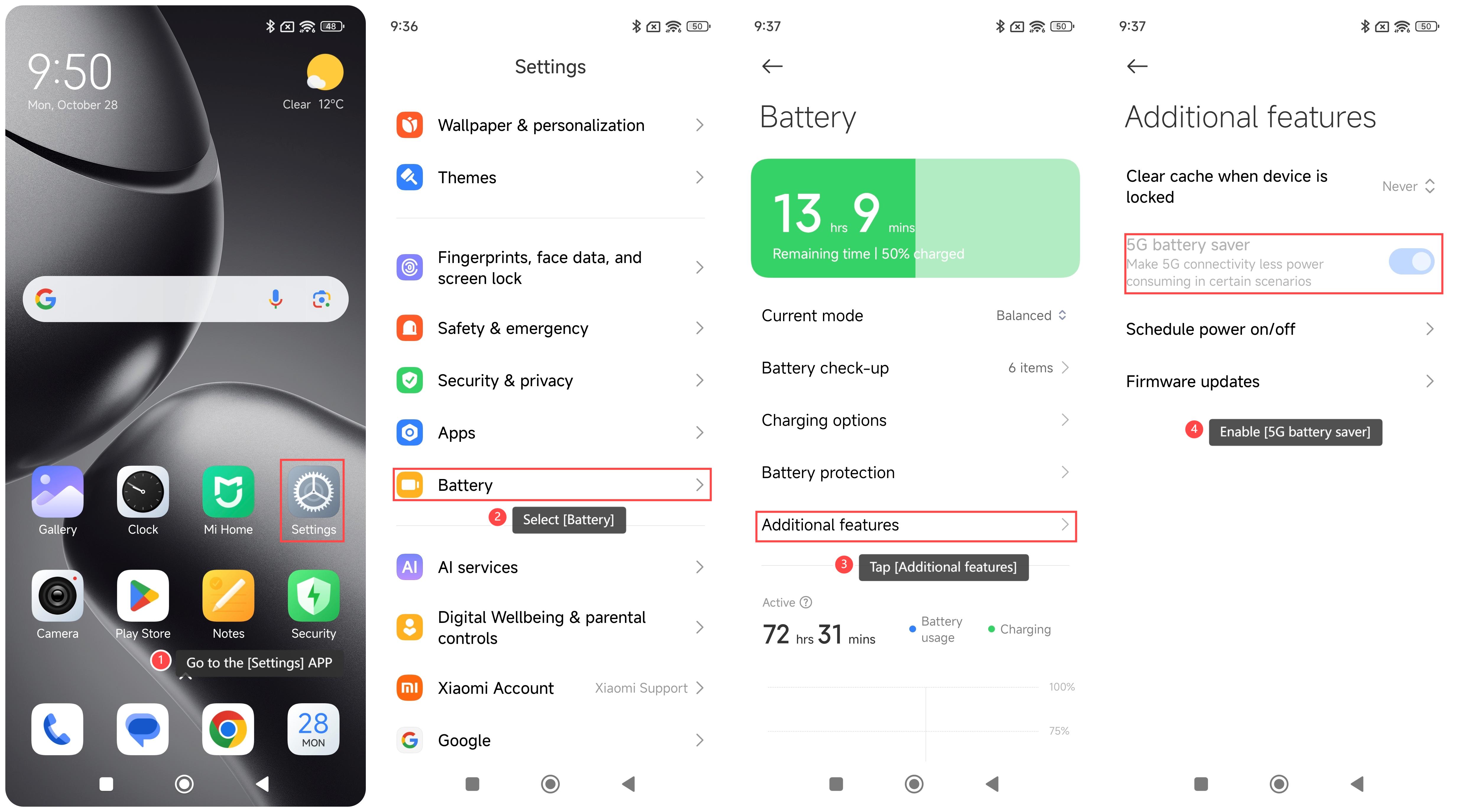 Máy Xiaomi 14T hỗ trợ tiết kiệm pin 5G, có thể kéo dài đáng kể tuổi thọ pin của điện thoại, cho phép bạn tận hưởng thời gian sử dụng lâu hơn mà không bị gián đoạn. Trong khi kéo dài tuổi thọ pin, trình tiết kiệm pin 5G nhằm mục đích duy trì sự cân bằng giữa hiệu suất thiết bị và mức tiêu thụ điện năng, đảm bảo trải nghiệm sử dụng mượt mà.