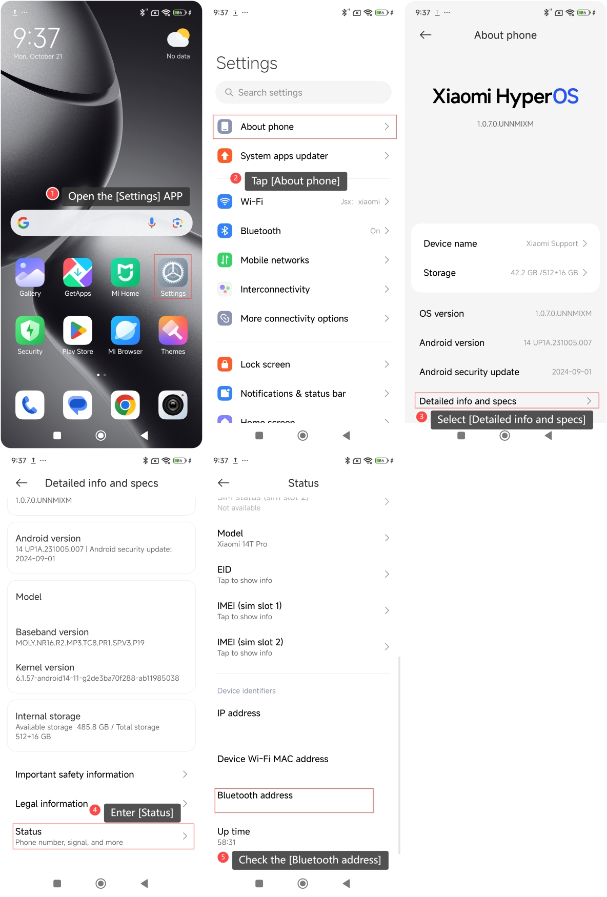Để kiểm tra địa chỉ Bluetooth trên điện thoại của bạn, vui lòng tham khảo các bước sau: