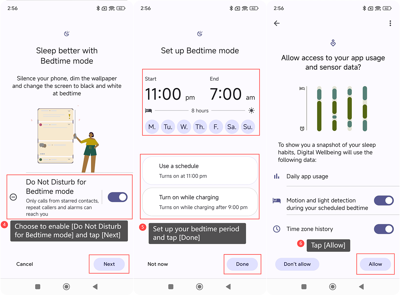 6. Nhấn vào [Cho phép] để xác nhận quyền truy cập vào dữ liệu cảm biến và sử dụng APP của bạn để tính năng Digital Wellbeing có thể hiển thị cho bạn ảnh chụp nhanh về thói quen ngủ của bạn;