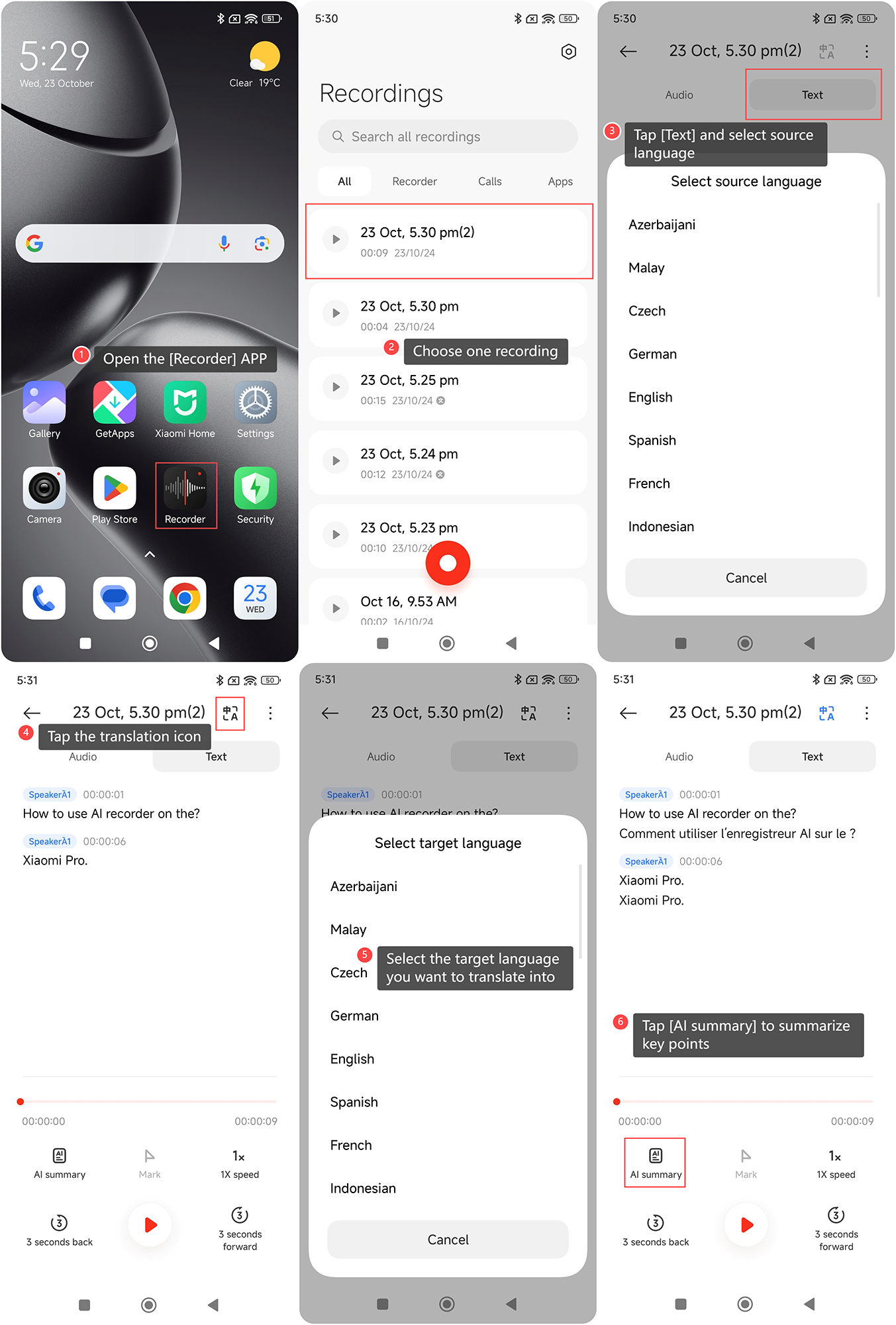 Để sử dụng chức năng AI Recorder trên Xiaomi 14T, vui lòng tham khảo các bước sau: