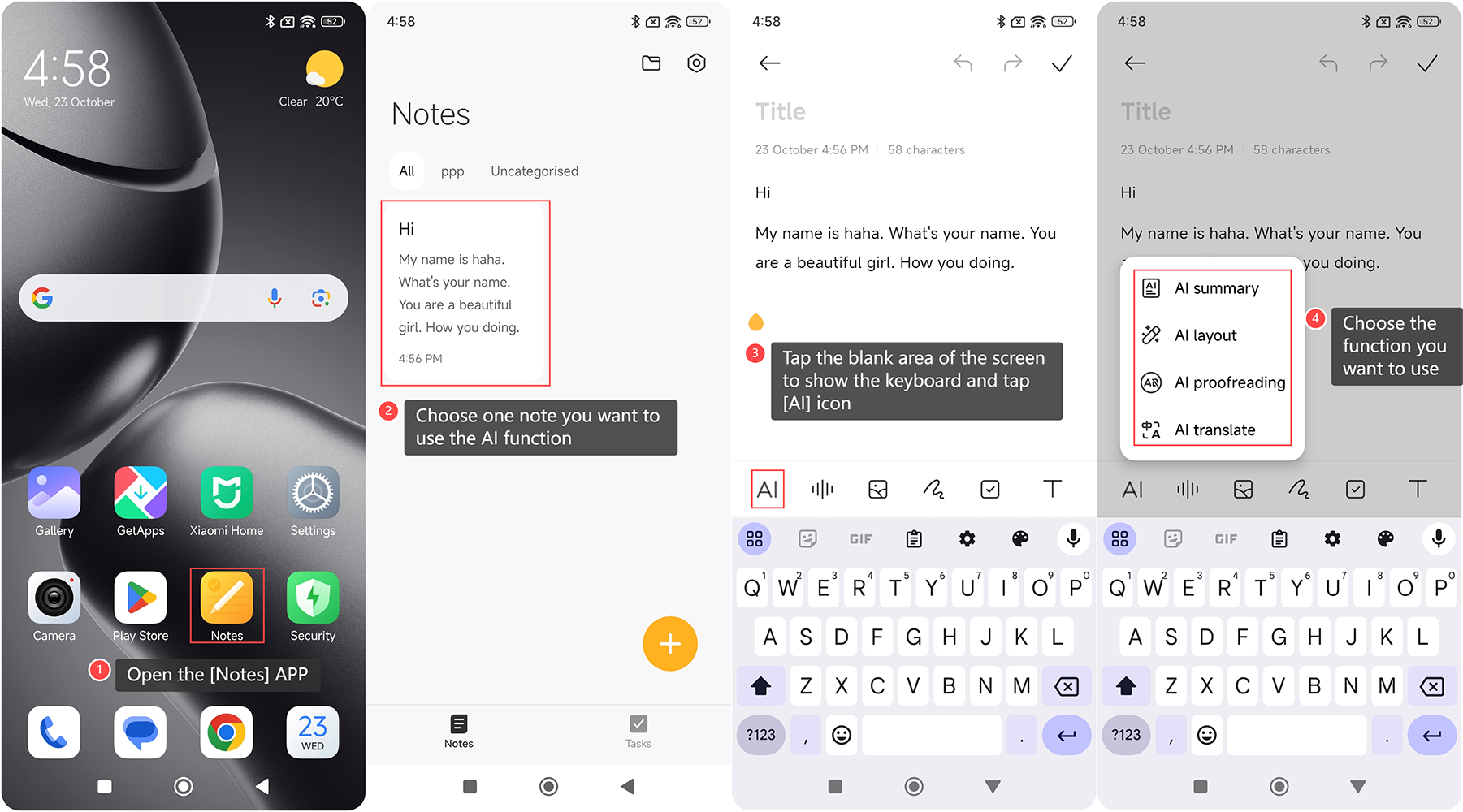 Để sử dụng AI Notes trên Xiaomi 14T Pro, vui lòng tham khảo các bước sau: