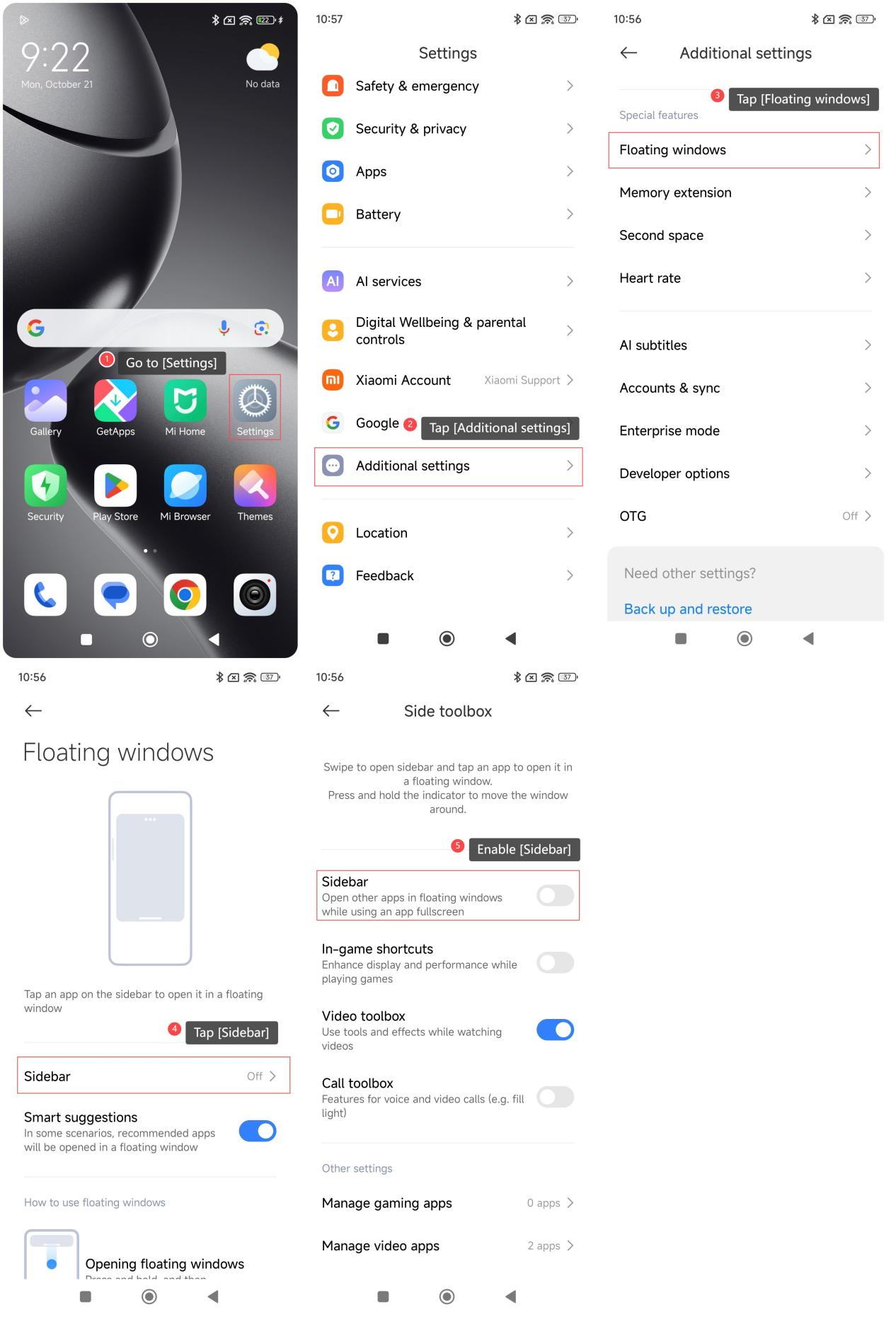 1. Vuốt để mở thanh bên và nhấn vào APP để mở nó trong cửa sổ nổi;