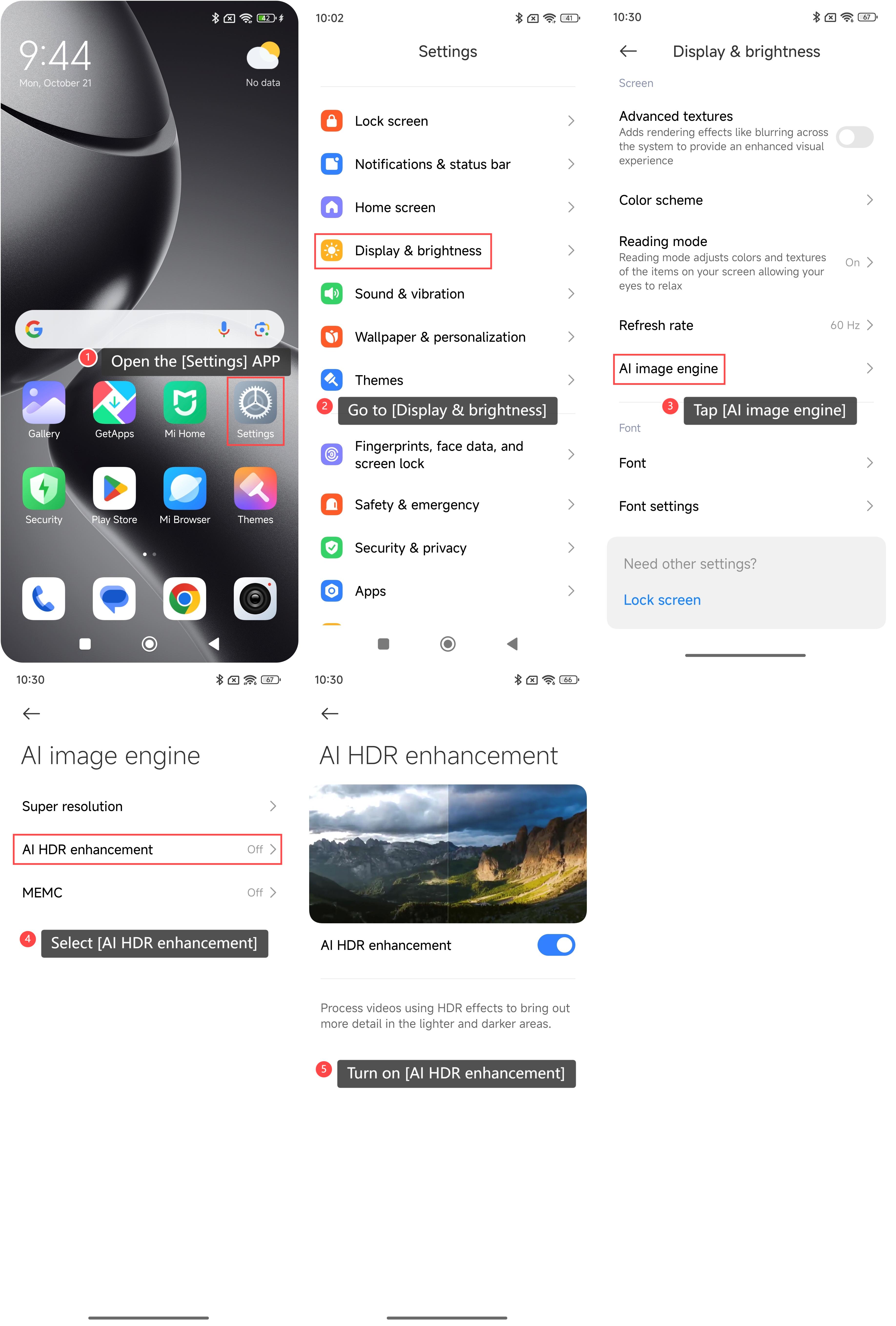 Để bật tính năng tăng cường AI HDR, vui lòng tham khảo các bước sau: