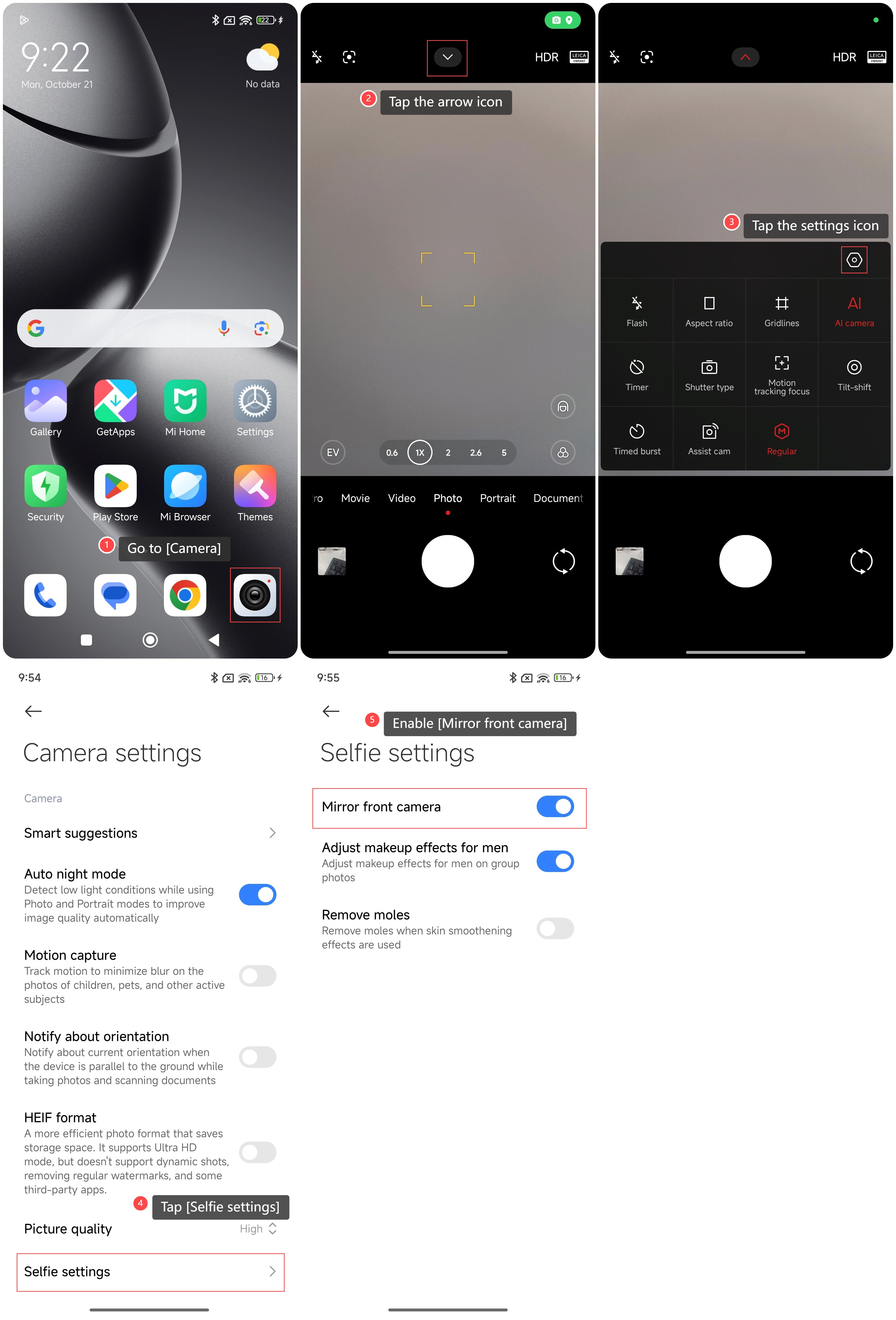 Để bật camera trước gương trên điện thoại của bạn, vui lòng tham khảo các bước sau: