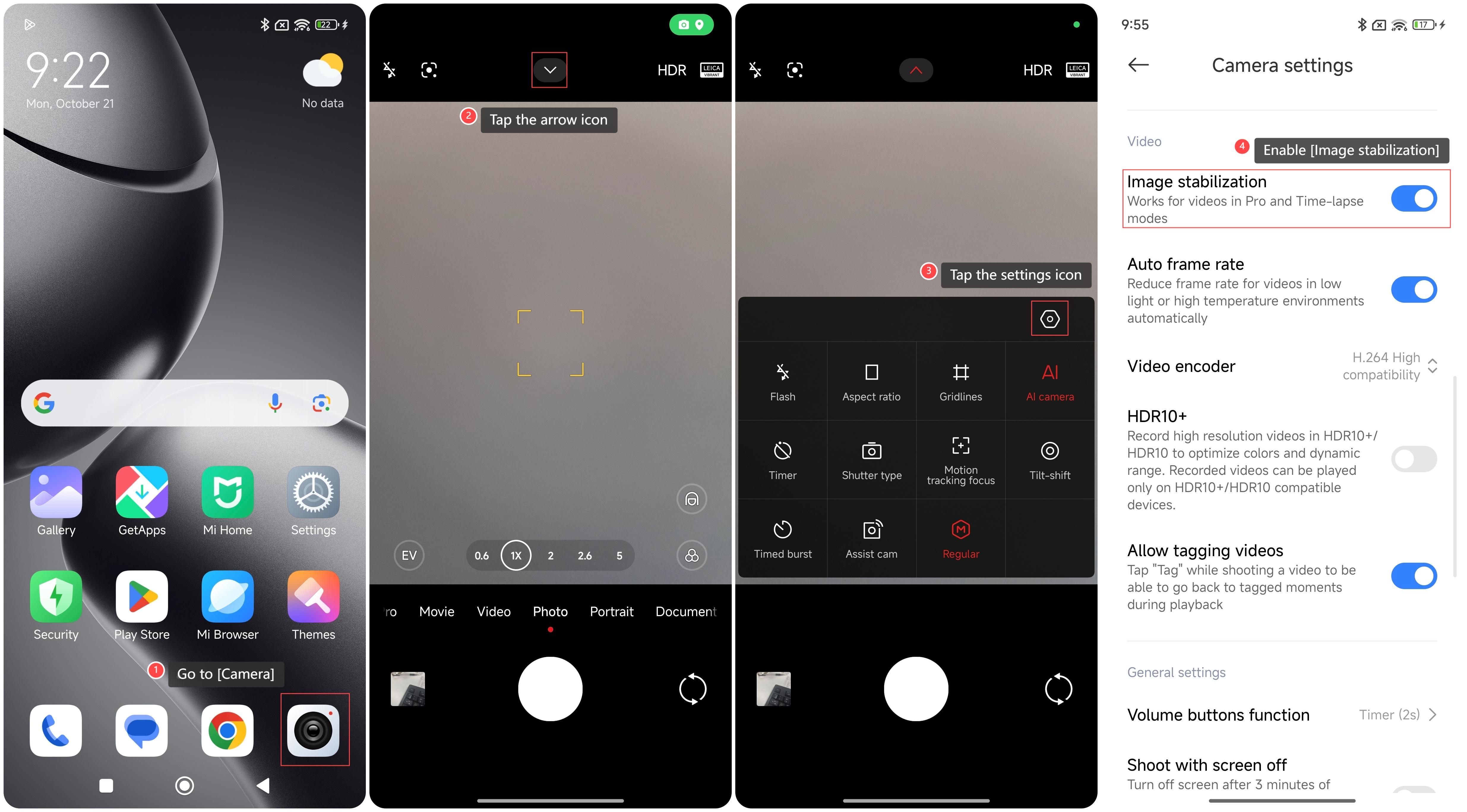 Để bật tính năng ổn định hình ảnh trên điện thoại, vui lòng tham khảo các bước sau: