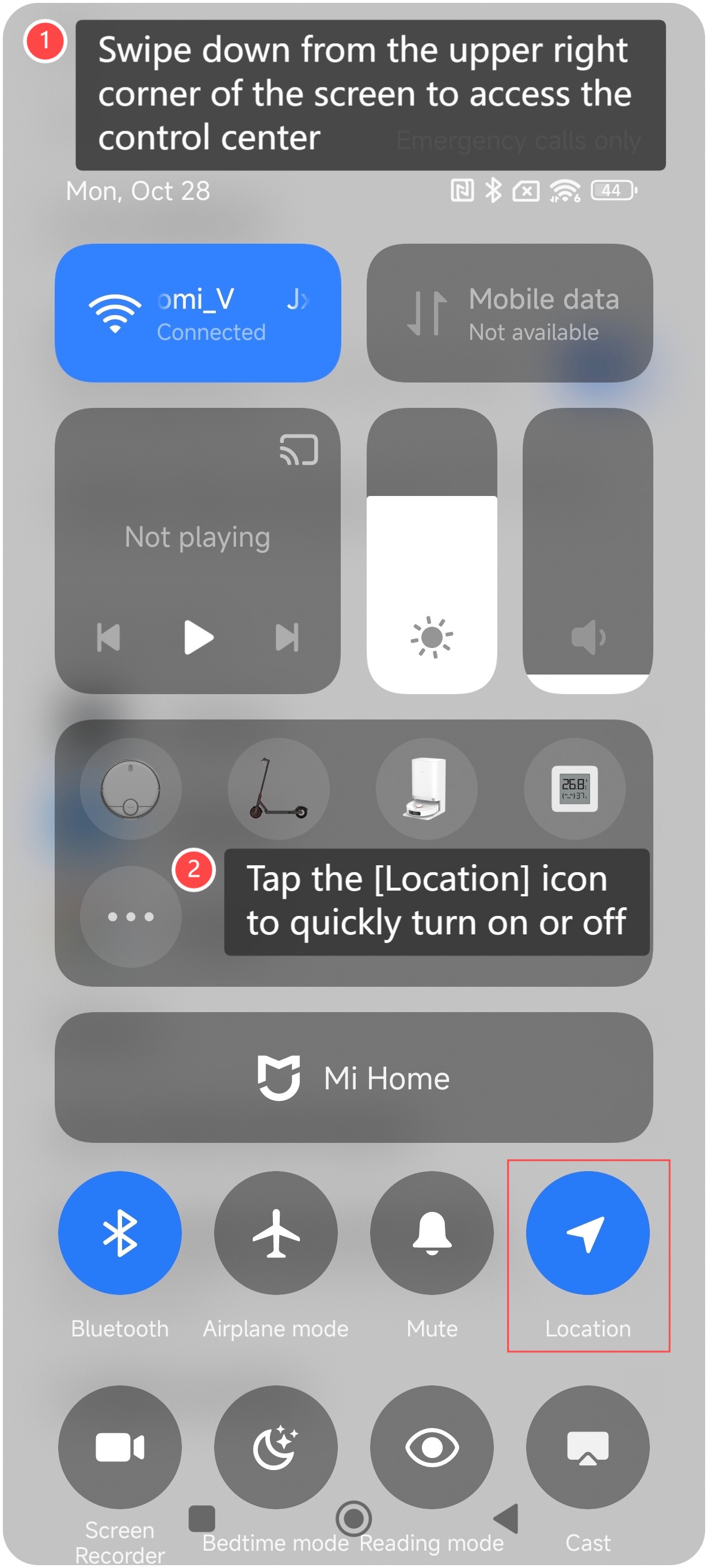 1. Vuốt xuống từ góc trên bên phải của màn hình để truy cập trung tâm điều khiển;