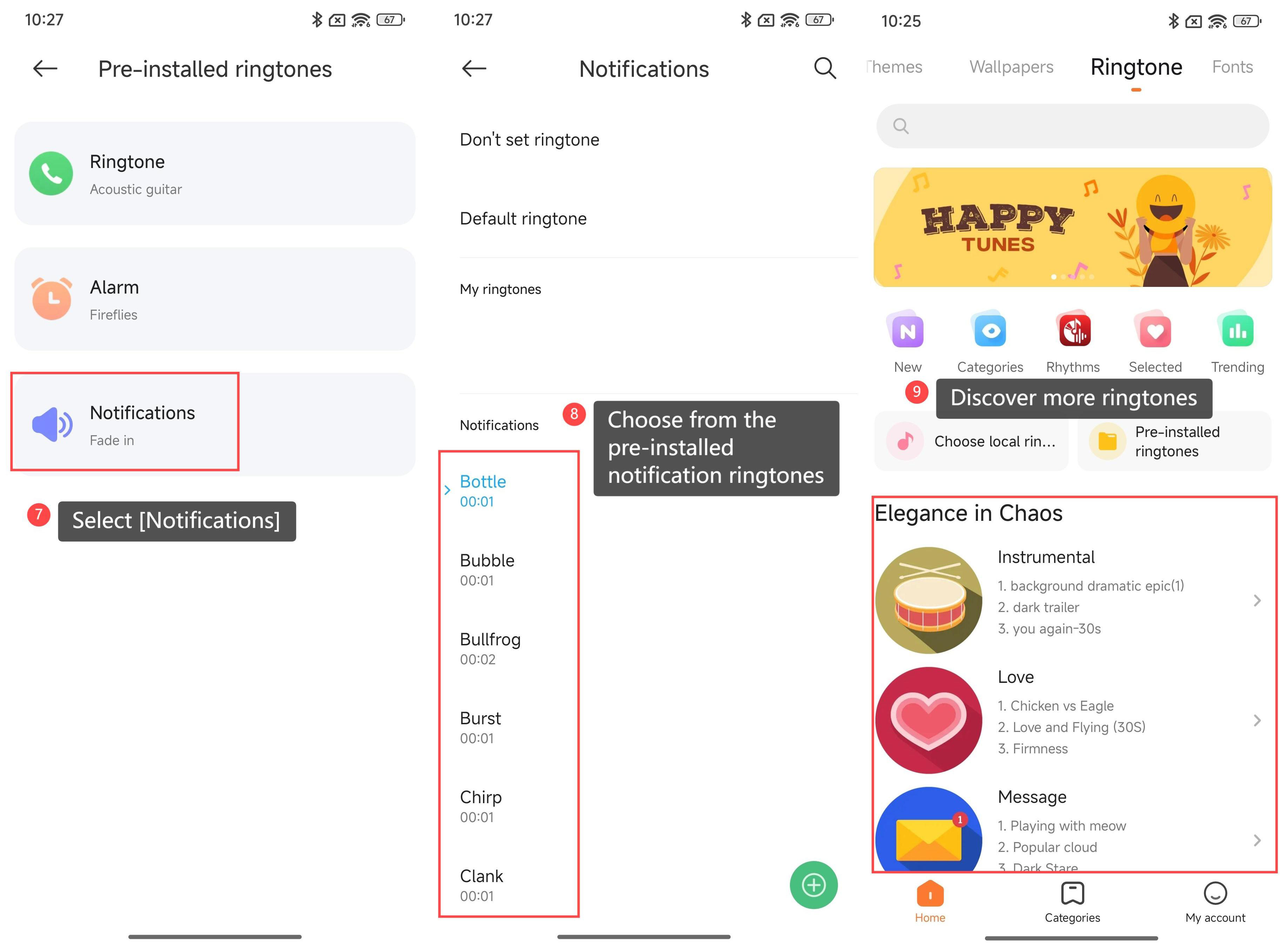 Nhạc chuông cho thông báo trên Xiaomi 14T Pro có thể được tùy chỉnh. Theo mặc định, nó đi kèm với một tập hợp các âm thông báo được cài đặt sẵn khác nhau về phong cách, chẳng hạn như giai điệu, âm thanh cảnh báo hoặc âm báo đơn giản. Bạn có thể chọn âm thanh thông báo ưa thích của mình thông qua menu cài đặt, nơi bạn có thể chọn từ các âm có sẵn hoặc thậm chí thêm âm thanh tùy chỉnh từ các tệp của mình. Để chọn nhạc chuông cho thông báo trên điện thoại của bạn, vui lòng tham khảo các bước sau: 1. Đi tới [Cài đặt]APP trên điện thoại của bạn; 2. Chọn [Âm thanh và rung]; 3. Nhấn vào [Notifications]; 4. Nhấn vào [Chọn nhạc chuông cục bộ]; 5. Thêm âm thanh tùy chỉnh từ [Recorder], [Audio files] và [Music]; 6. Bạn cũng có thể quay lại giao diện trước đó và nhấn vào [Nhạc chuông được cài đặt sẵn]; 7. Chọn [Thông báo]; 8. Chọn từ nhạc chuông thông báo được cài đặt sẵn; 9. Bạn cũng có thể khám phá và chọn thêm nhạc chuông thông qua giao diện này để tìm nhạc chuông thông báo yêu thích của mình.
