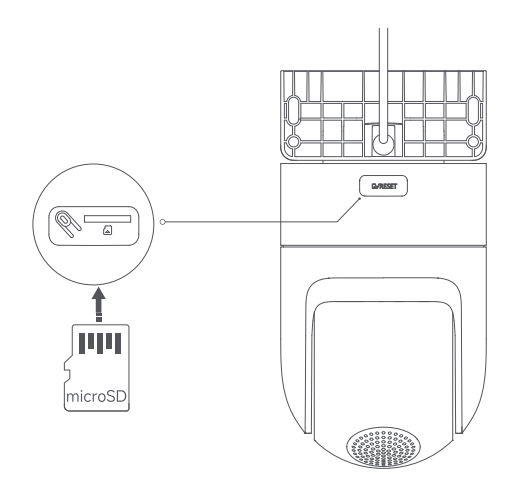 1. Rút phích cắm của máy ảnh khi lắp hoặc tháo thẻ nhớ microSD. Vui lòng sử dụng thẻ nhớ microSD của thương hiệu đủ tiêu chuẩn (máy ảnh hỗ trợ thẻ nhớ microSD từ 16GB đến 256GB. Thẻ nhớ microSD cần được định dạng thông qua [Cài đặt] >> [Quản lý bộ nhớ] trên giao diện của máy ảnh trong ứng dụng Mi Home / Xiaomi Home). Khuyến nghị rằng thẻ nhớ microSD có tốc độ đọc / ghi không nhỏ hơn U1 / Class 10;