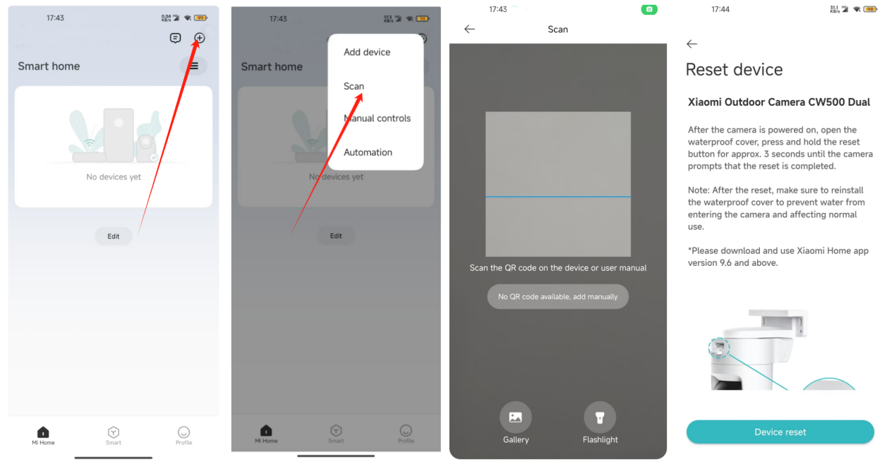 1. Q: Làm cách nào để kết nối Xiaomi Outdoor Camera CW500 Dual với ứng dụng Mi Home / Xiaomi Home?