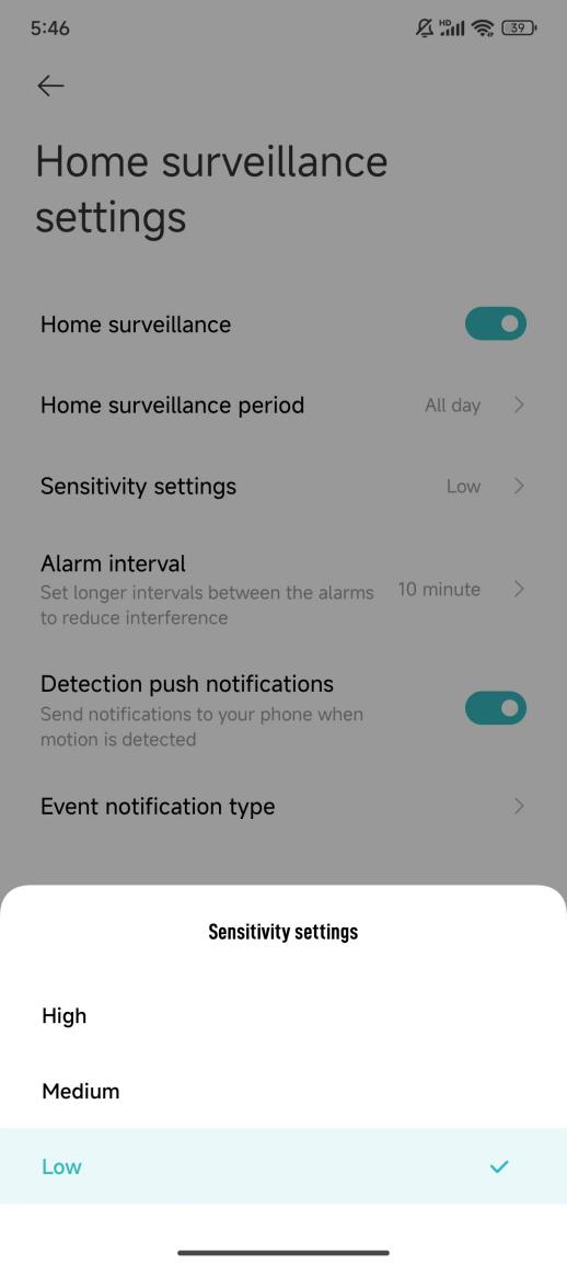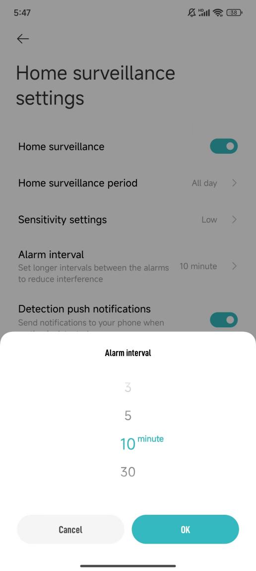 5. Xác nhận cài đặt cho giám sát gia đình. Truy cập ứng dụng Mi Home / Xiaomi Home >> chọn máy ảnh >> nhấn vào biểu tượng ba chấm ở góc trên bên phải của màn hình >> [Cài đặt giám sát nhà] >> bật [Giám sát nhà]. Bạn cũng có thể đặt khoảng thời gian giám sát tại nhà, cài đặt độ nhạy, khoảng thời gian cảnh báo và thông báo đẩy phát hiện.